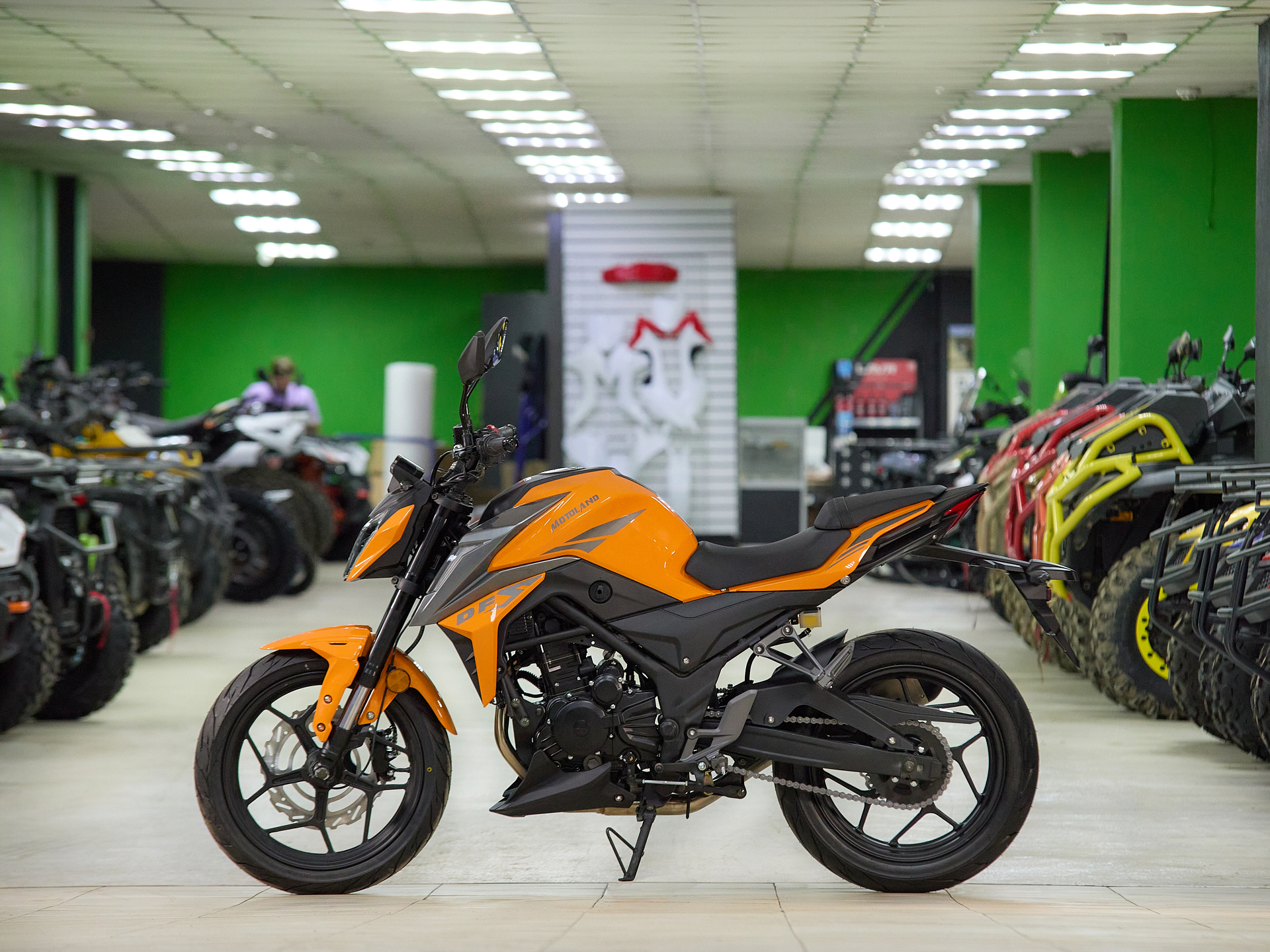Представляем Вашему вниманию дорожный мотоцикл на шестискоростном двигателе 174 MN (CBS300 с балансиром) , с большим радиатором водяного охлаждения, с электростартером, мощностью 24 л.с. На двигателе установлен карбюратор Keihin PE 34 MV.