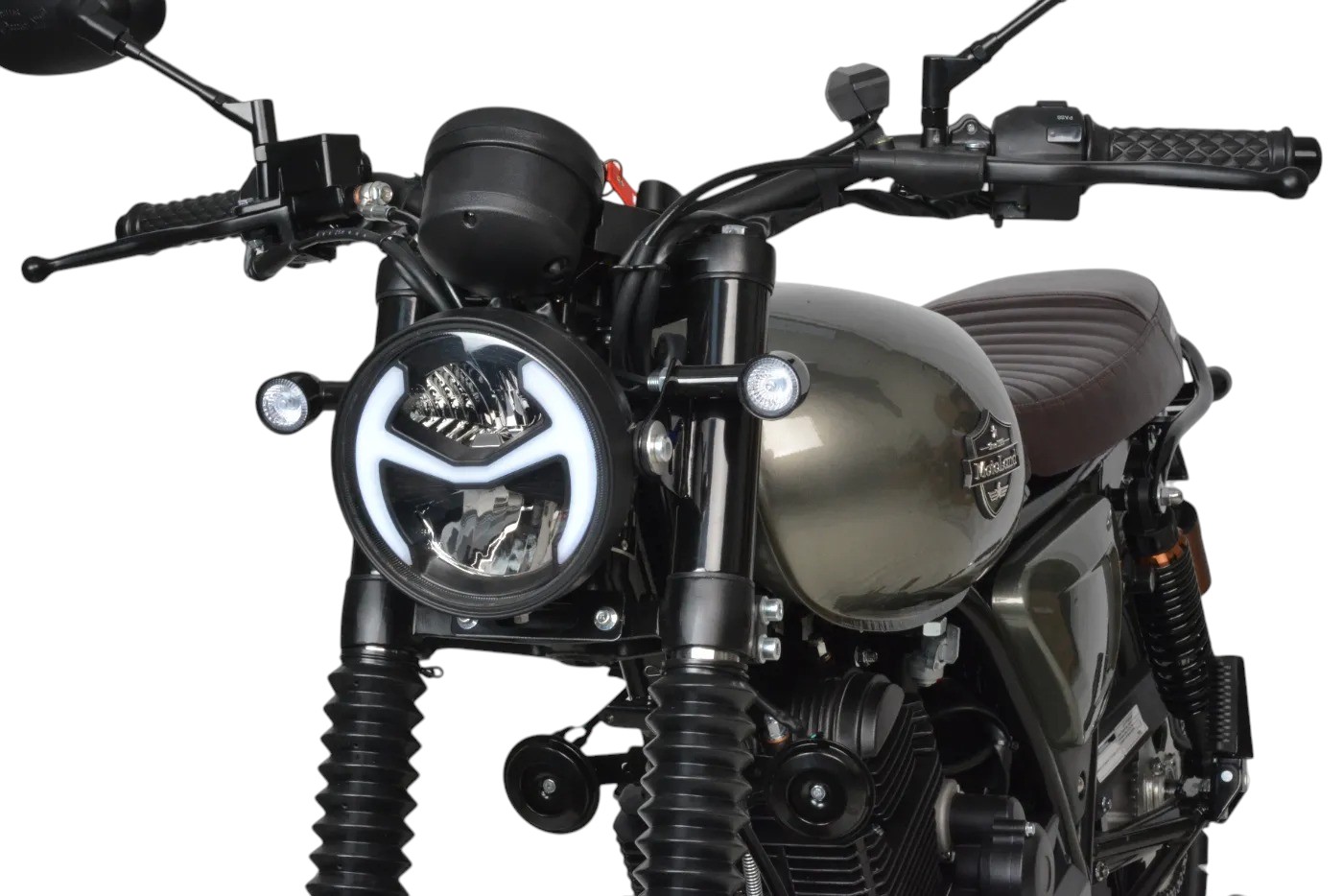 TEXAS 300 PRO. Дизайн мотоцикла выполнен в ретро стиле, укомплектованный обновленная LED-фарой, приборной панелью, USB-зарядкой, креплением номерного знака, резиновыми накладками на бак, обновленным глушителем из нержавеющей стали и прочими канонами современности. Классическая посадка, мягкое кожаное сиденье и литые колеса – всё это способствует комфортному управлению по асфальтированным дорогам и пересеченной местности.