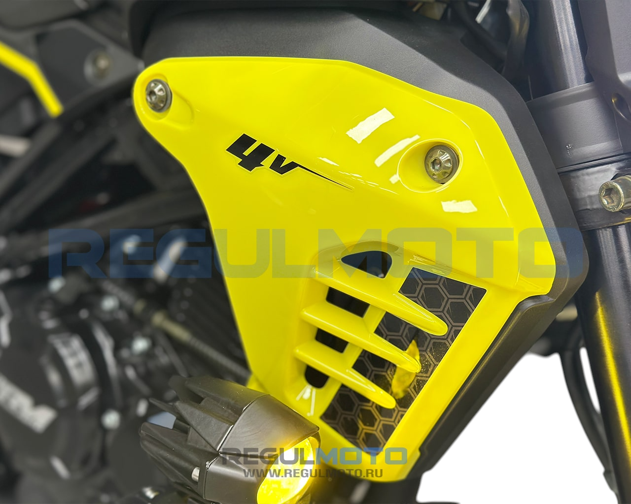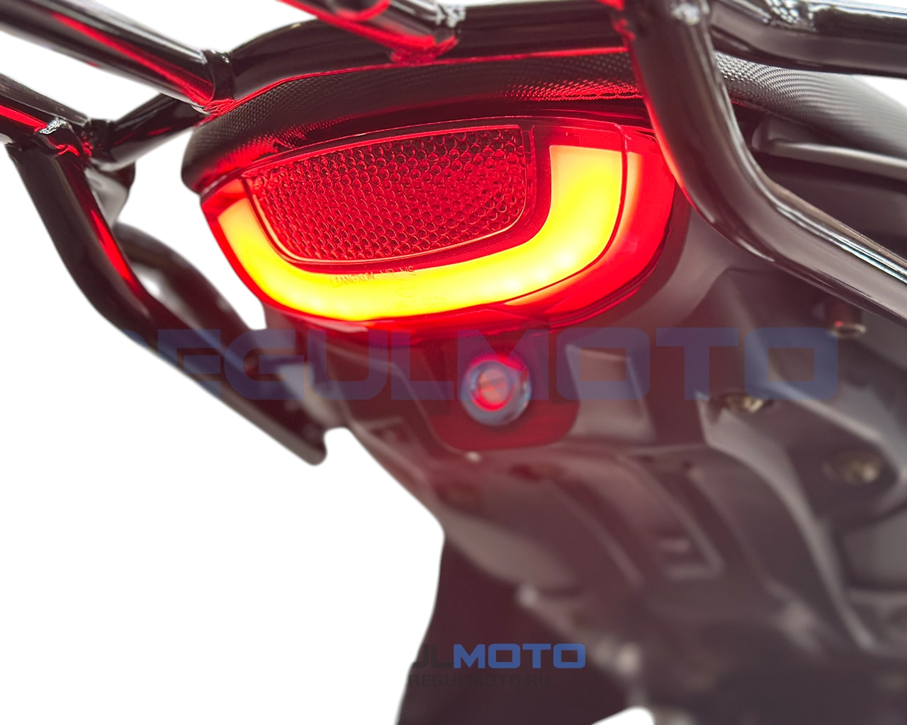- Полное LED-оснащение: фара, стоп-сигнал, поворотники + доп. жёлтый свет (противотуманки)