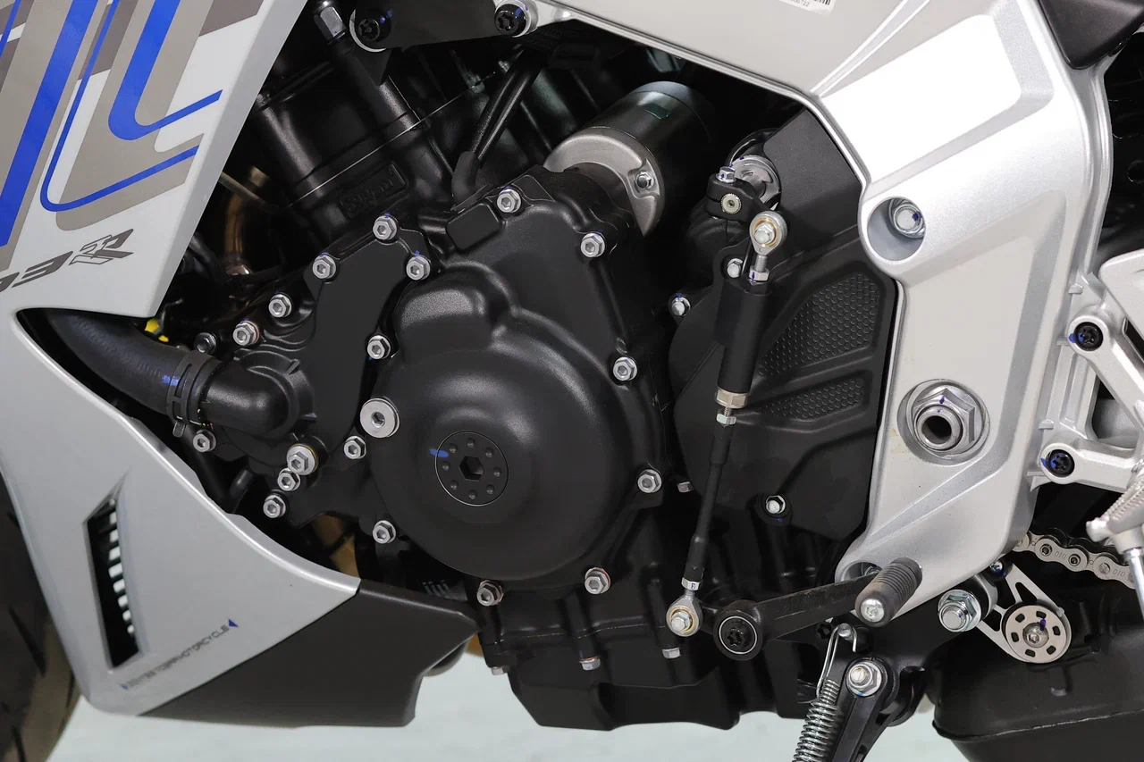 Для охлаждения двигателя используется жидкостная система, а за подачу топлива отвечает инжектор MOTION. Трансмиссия имеет 6 ступеней и схему 1-N-2-3-4-5-6. Объём топливного бака 16 литров. Замок топливного бака с электронным управлением.