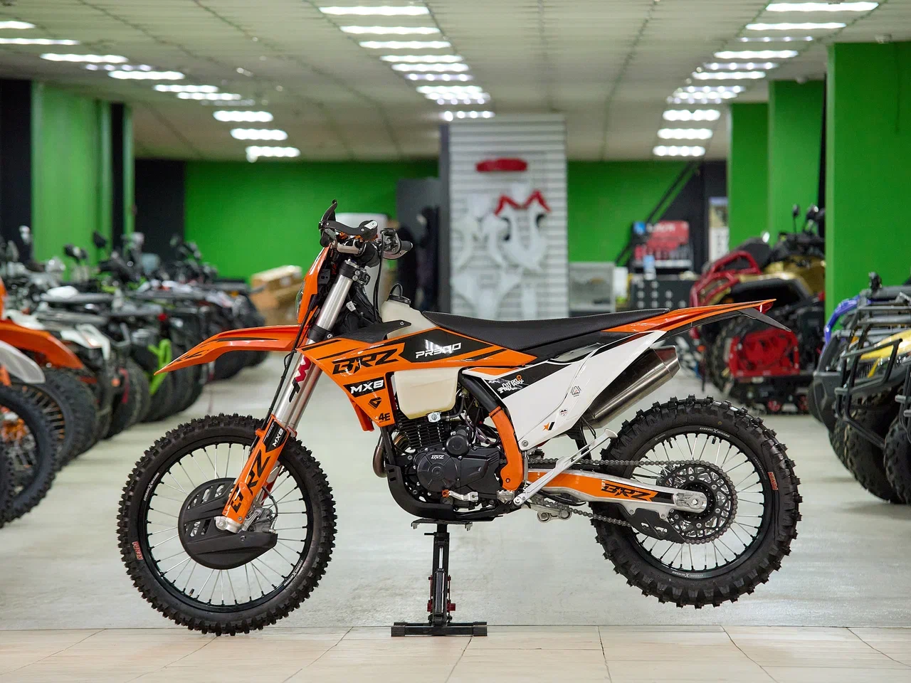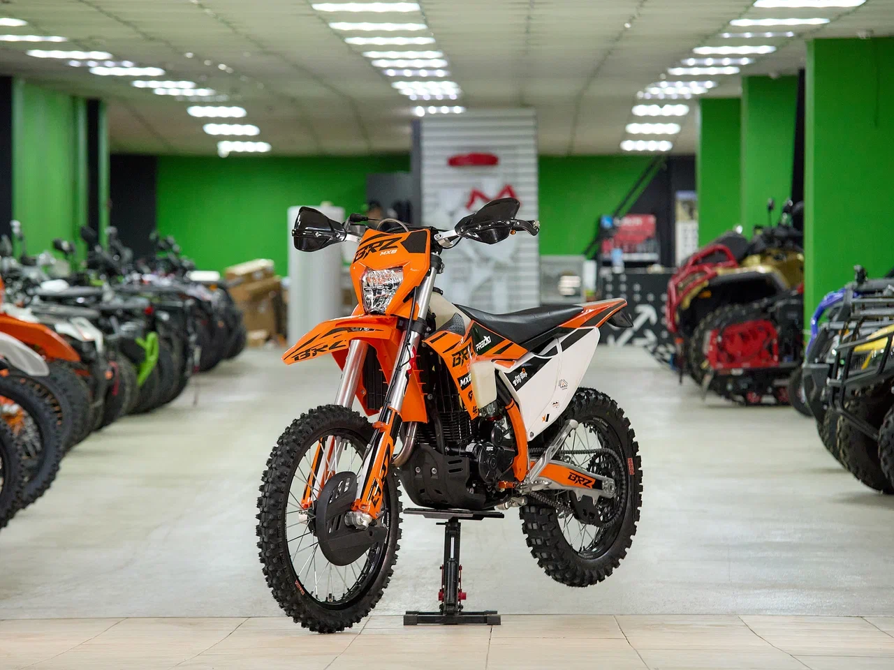Навесное – Руль 28мм. Короткоходная ручка газа. Цепь 520. Алюминиевая лапка КПП, боковые накладки на рамы. Счетчик моточасов, приборная панель. Стоп сигнал.