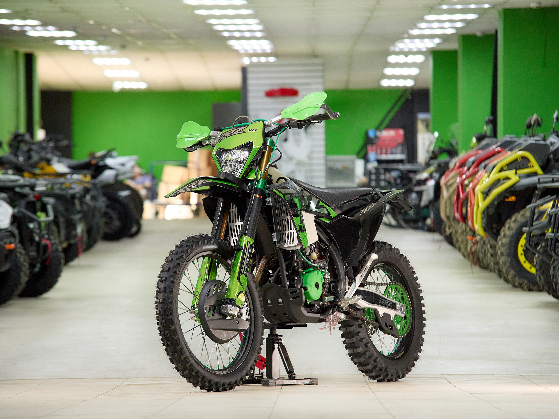 Навесное – Руль 28мм. Короткоходная ручка газа. Цепь 520. Алюминиевая лапка КПП, боковые накладки на рамы. Счетчик моточасов, приборная панель. Стоп сигнал.