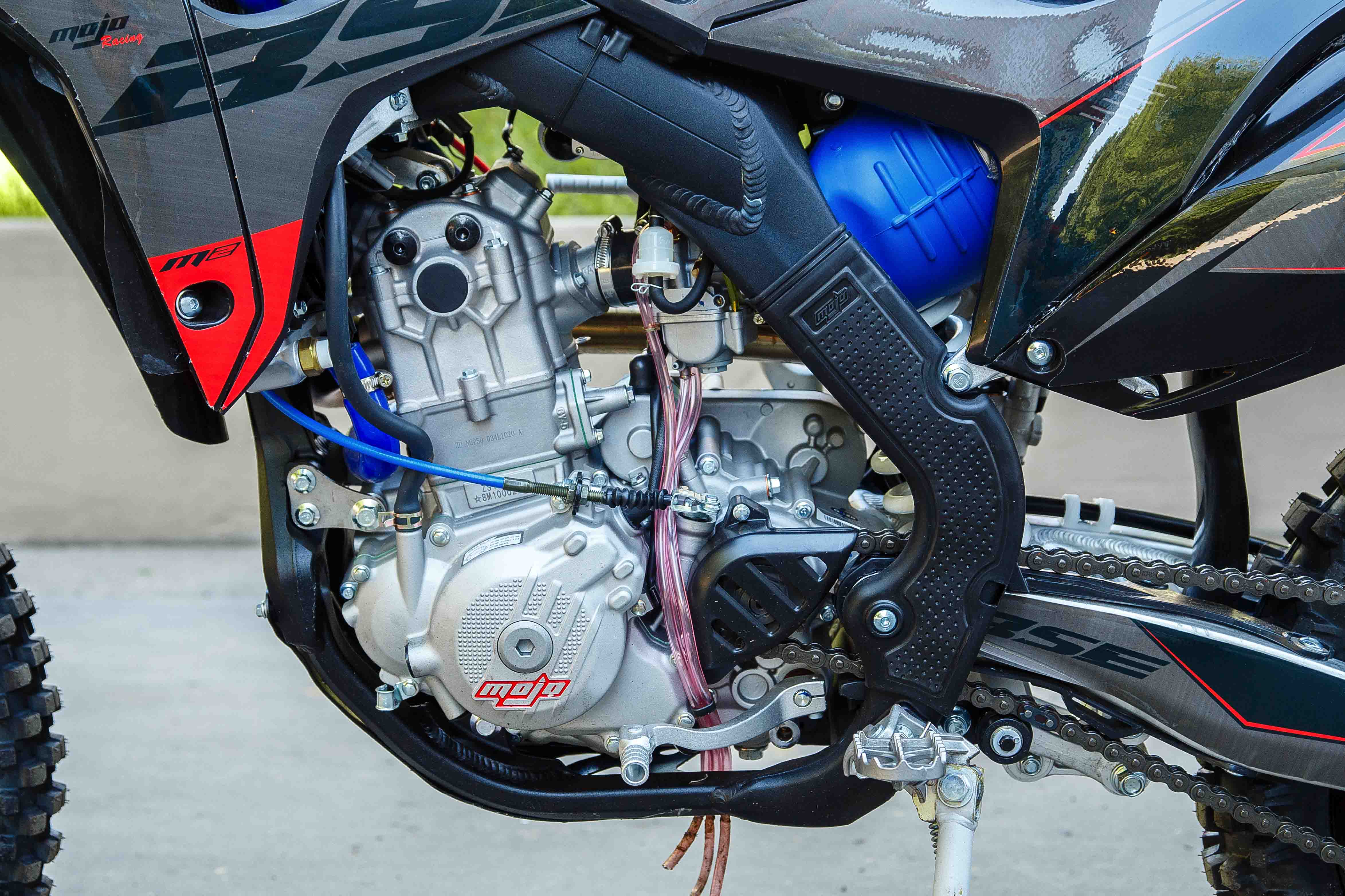 Рама алюминиевая сваренная роботизированным способом, поэтому швы и проварка не вызывает нареканий, геометрия и профиль сварных элементов являются копией рамы Honda crf 250. В базе установлена защита картера.