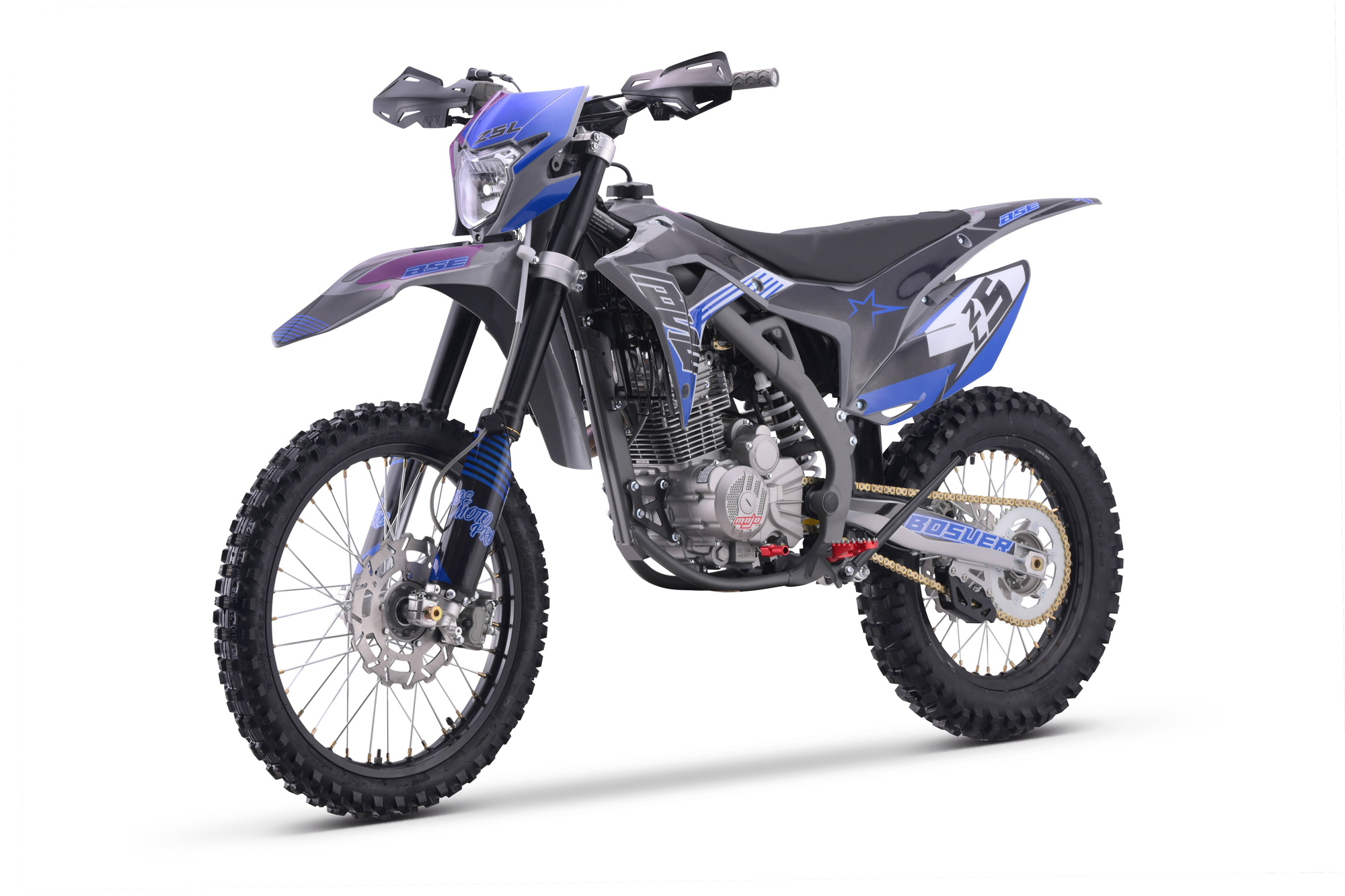 За основу мы взяли успешный полноразмерный Z5 и упростили комплектацию, чтобы сделать максимально привлекательный прайс, оставив главные компоненты — надежный 250-кубовый мотор Zonsen и усиленную стальную раму Bosuer. В итоге получили полноразмерный, функциональный и мощный эндуро мотоцикл. Идеально сбалансированный, устойчивый и готовый прощать ошибки при езде.