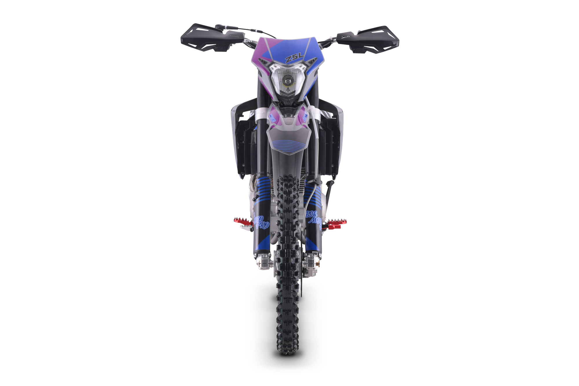 Z5L уже в заводской комплектации готов к покорению серьезного бездорожья: нерегулируемая энергоемкая подвеска с большими ходами, вилка “перевертыш” и наличие рычагов задней прогрессии. Установлена “злая” внедорожная резина Carrystone. Мощная гидравлическая тормозная система HSК Racing остановит байк в любых условиях. На мотоцикле установлены: усиленные черные колёсные диски MOJO, CNC подножки c увеличенным зацепом, датчик моточасов, защита рук, грипсы и ручка газа Nibbi Racing. В фару установлена диодная лампа.
