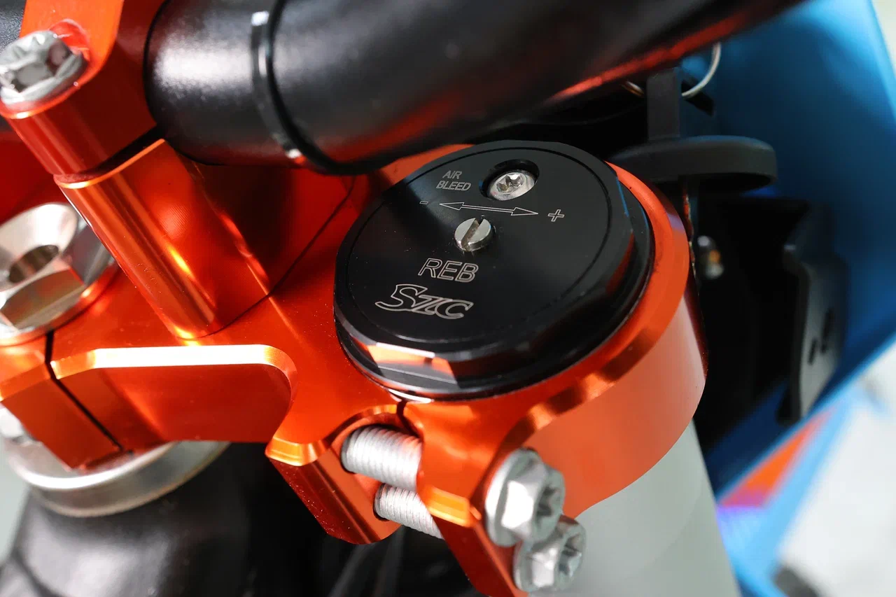 Передняя подвеска – телескопическая вилка перевёрнутого типа SZC Lite длиной 940 мм, задняя – моноамортизатор SZC Lite длиной 480 мм. Оба компонента подвески регулируются на сжатие. В паре они позволяют эффективно амортизировать удары при езде по неровностям и препятствиям на трассе. Перья вилки снабжены защитными кожухами.