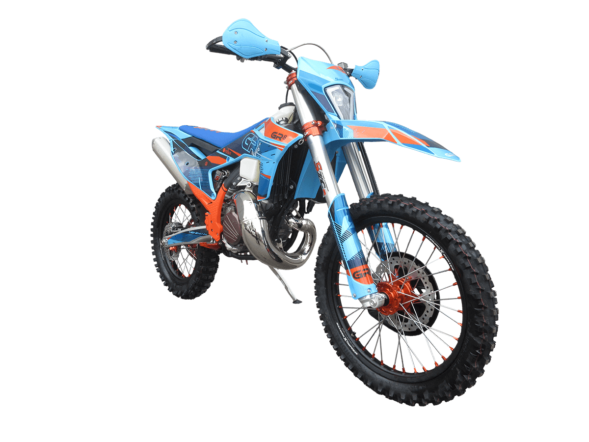Мотоцикл GR8 T300L Enduro Pro без прогрессии 2025 – это чистокровный спортивный 2-тактник серии Enduro Pro, предназначенный для рекордов на внедорожье и специальных трассах.
