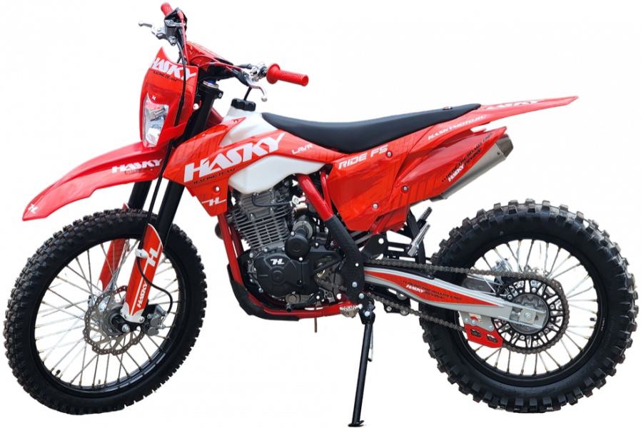 Hasky F5 Ride 2025 представляет собой самую доступную модель в линейке бренда, отличаясь от старшей F5 PRO 2025 комплектацией, но сохраняя при этом надежность и качество, присущие семейству Hasky. Этот среднеразмерный эндуро-мотоцикл на колесах 21"/18" построен на прочной раме K5.