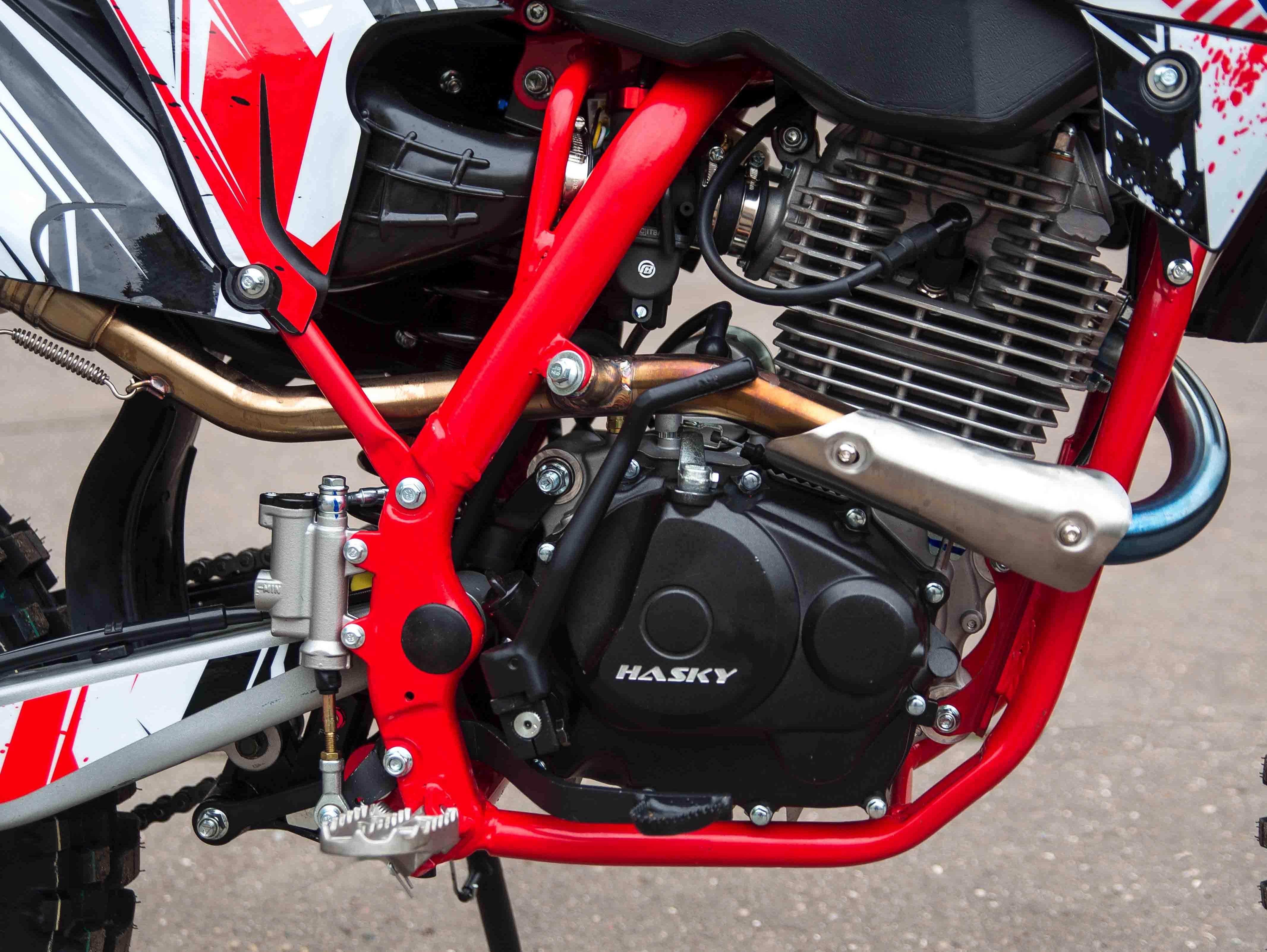 Инженеры Hasky учли все ошибки конкурентов и снабдили мотоцикл качественными подвесками и алюминиевыми ободами . Был переработан узел верхнего крепления двигателя к раме, избавивший от повышенных вибраций. Ведомую звезду закрепили на 6 потайных болтов. Ну и не стали экономить на карбюраторе - в базе установлен NIBBI PE 30!
