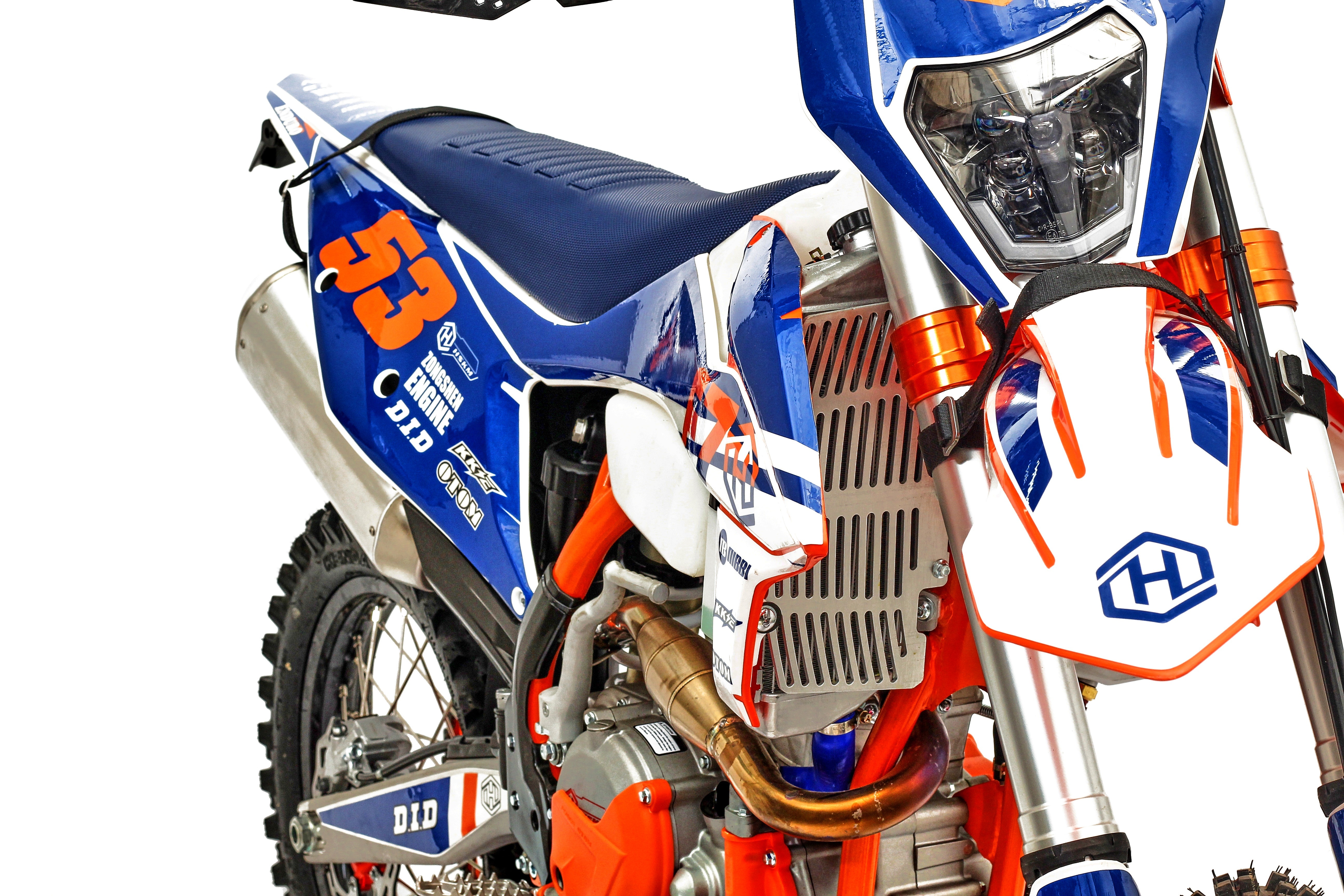 Мотоцикл Hasky F7 FCR KT 300NC на колесах 21/18 дюймов получил новый привлекательный дизайн обвеса.