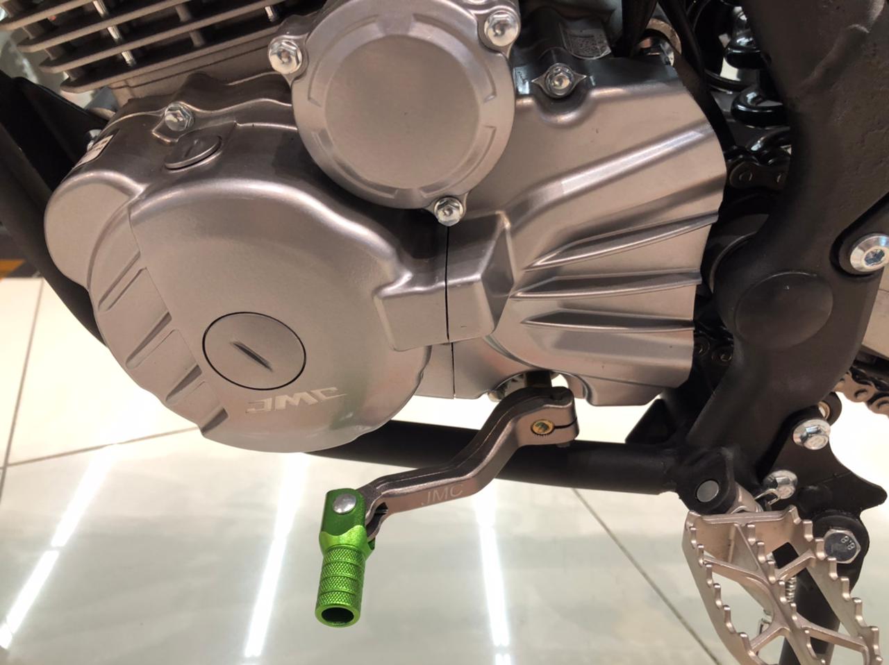Инженеры JMC moto учли все ошибки конкурентов и снабдили мотоцикл качественными подвесками и алюминиевыми ободами KKE. Был переработан узел верхнего крепления двигателя к раме, избавивший от повышенных вибраций. Ведомую звезду закрепили на 6 потайных болтов. Ну и не стали экономить на карбюраторе - в базе установлен NIBBI PE 30!