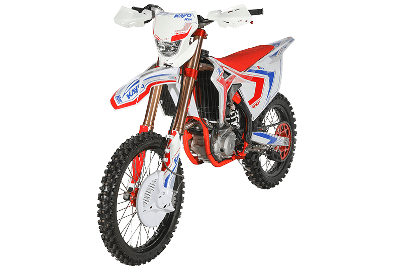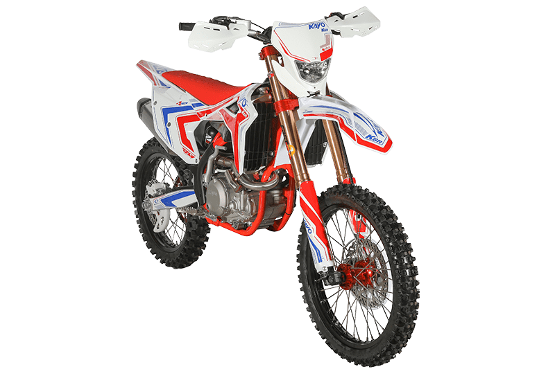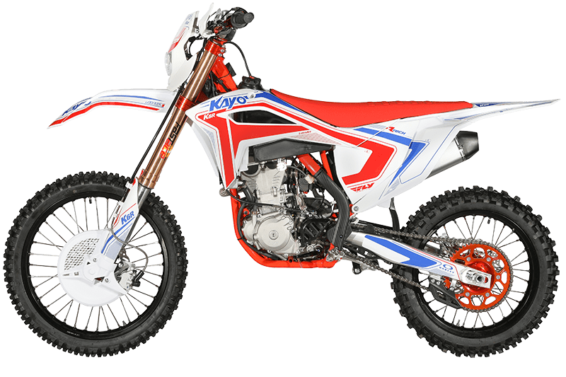 На обновлённой модификации мотоцикла установлены высокопроизводительные амортизаторы KAYO Racing Performance. Подвеска располагает полным диапазоном настроек, позволяющих адаптироваться под разные эксплуатационные задачи. Длина переднего амортизатора 950 мм, длина заднего амортизатора 480 мм.
