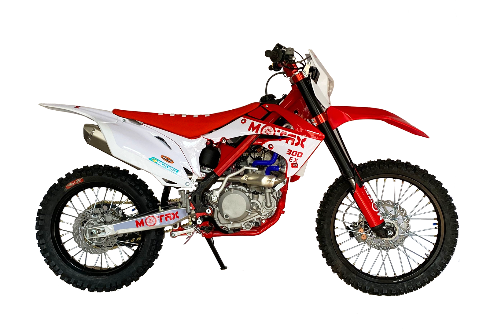 Мотоцикл MOTAX EX 300 позволит Вам испытать все грани удовольствия от экстремальной езды по бездорожью. Данная модель, предназначенная для гонок в стиле мотокросс и эндуро, является современным предложением от MOTAX и олицетворяет новейшие разработки инженерной мысли.Этот яркий, стильный и агрессивный мотоцикл с отличными эксплуатационными и ходовыми характеристиками найдет отклик в душе любителя скорости и драйва. В основе транспортного средства – надежная хромомолибденовая рама, готовая к высоким нагрузкам и резким маневрам. Она выдержит райдера весом до 150 кг.В основе ходовой части мотоцикла – классическая шестиступенчатая коробка передач (1-N-2-3-4-5-6), где N – нейтральная передача. Привод цепной. Качественная дисковая гидравлическая тормозная система гарантирует своевременное и четкое торможение.