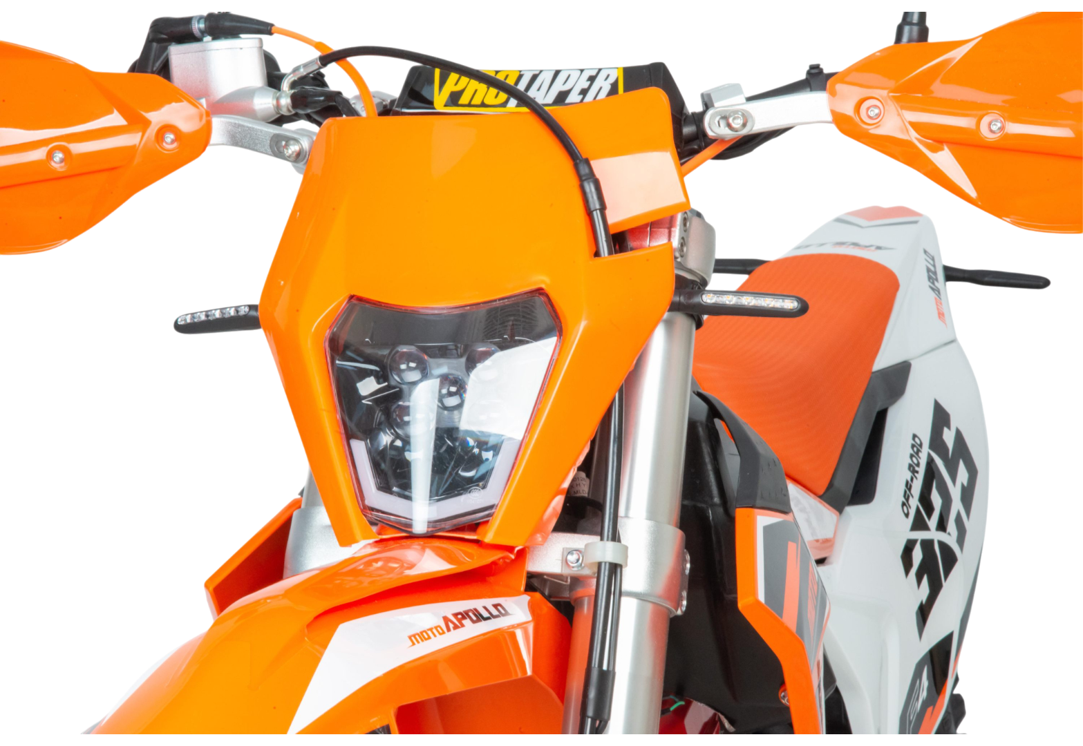 Moto Apollo F3 300 в новой, ещё более продвинутой версии — это мощный и технологичный кроссовый мотоцикл, созданный для уверенной езды по пересечённой местности. Несмотря на маркировку двигателя 176FMN, его реальный рабочий объём составляет 300 см³, а мощность достигает 27 лошадиных сил, что делает его одним из самых энерговооружённых в своём классе. Двигатель с воздушным охлаждением и цепным приводом ГРМ сочетает простоту конструкции с высокой надёжностью, а использование бензина АИ-95 обеспечивает стабильную работу и оптимальную отдачу.