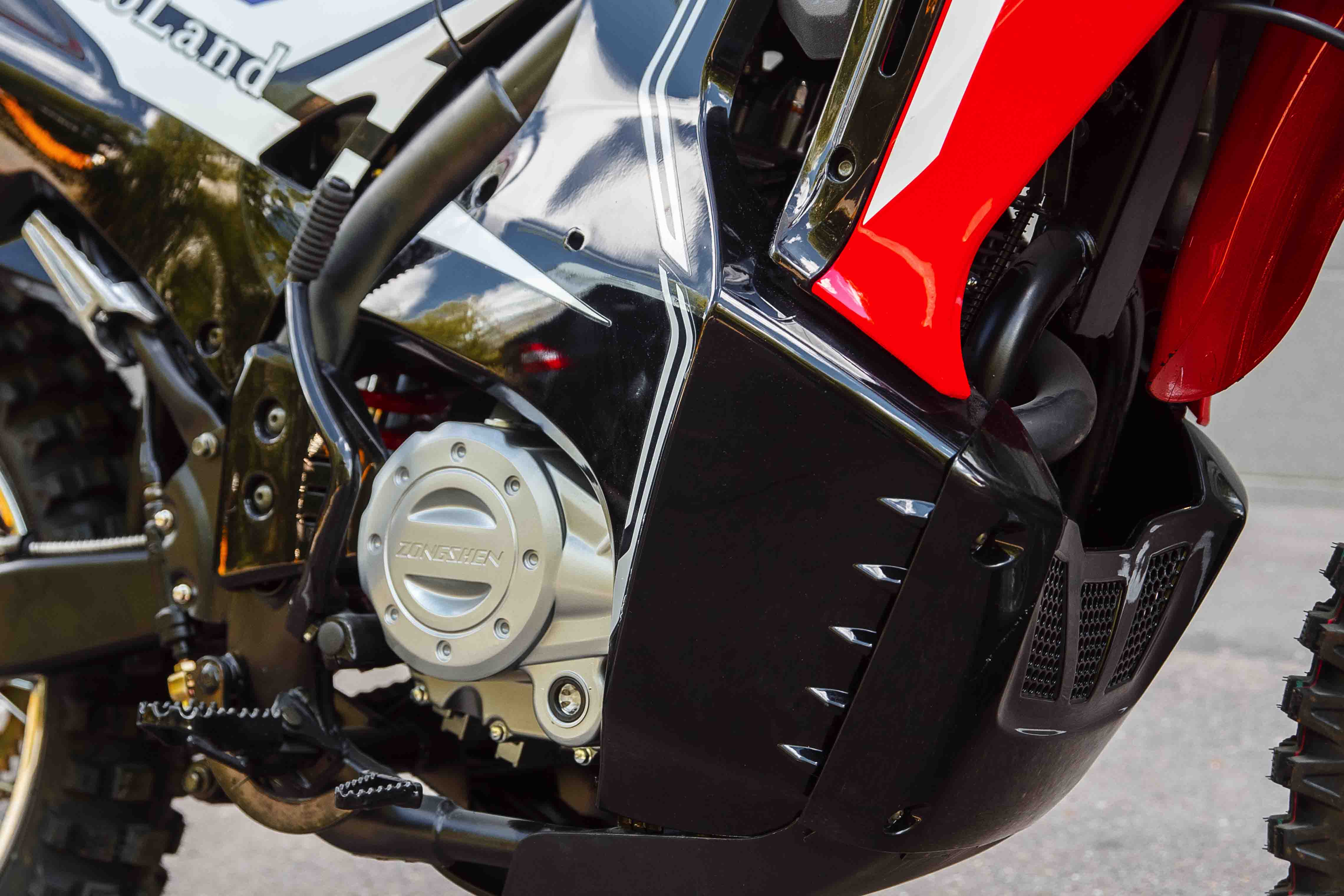 Мотоцикл оснащен надежными передними и задними тормозами с двух поршневыми тормозными суппортами.Колёса спицованные, размер заднего колеса — 18 дюймов, переднего — 21 дюйм.
