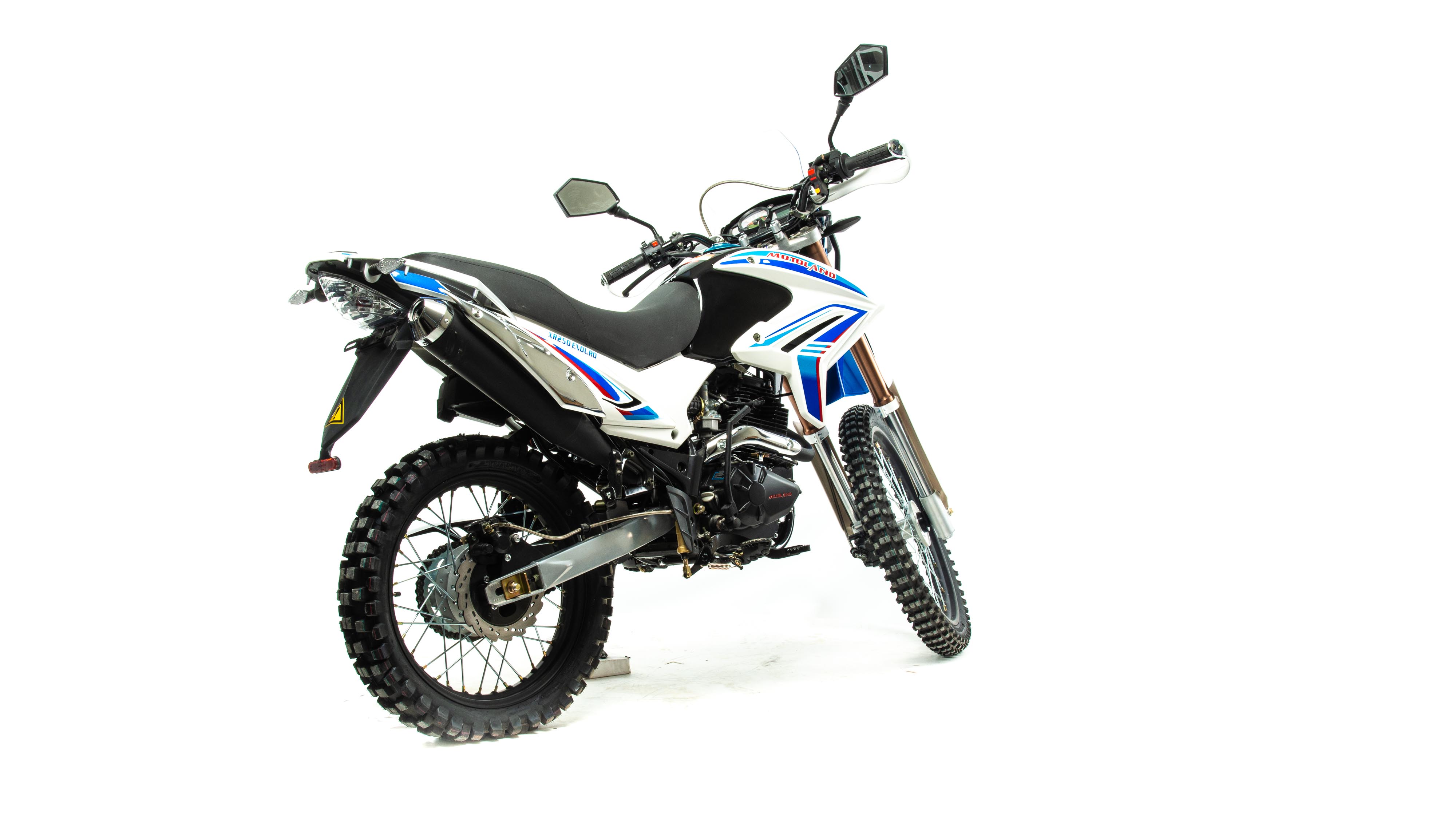 Motoland XR250 ENDURO (172FMM) отличаются высокой проходимостью, отлично ведут себя на мягком грунте и песке, легко преодолевают препятствия. Спортивный характер XR250 ENDURO (172FMM) подчёркивается современным дизайном. Классическая конструкция акцентирует внимание на сильных сторонах мотоцикла, которому не страшны грязь, брёвна, камни и другие преграды.