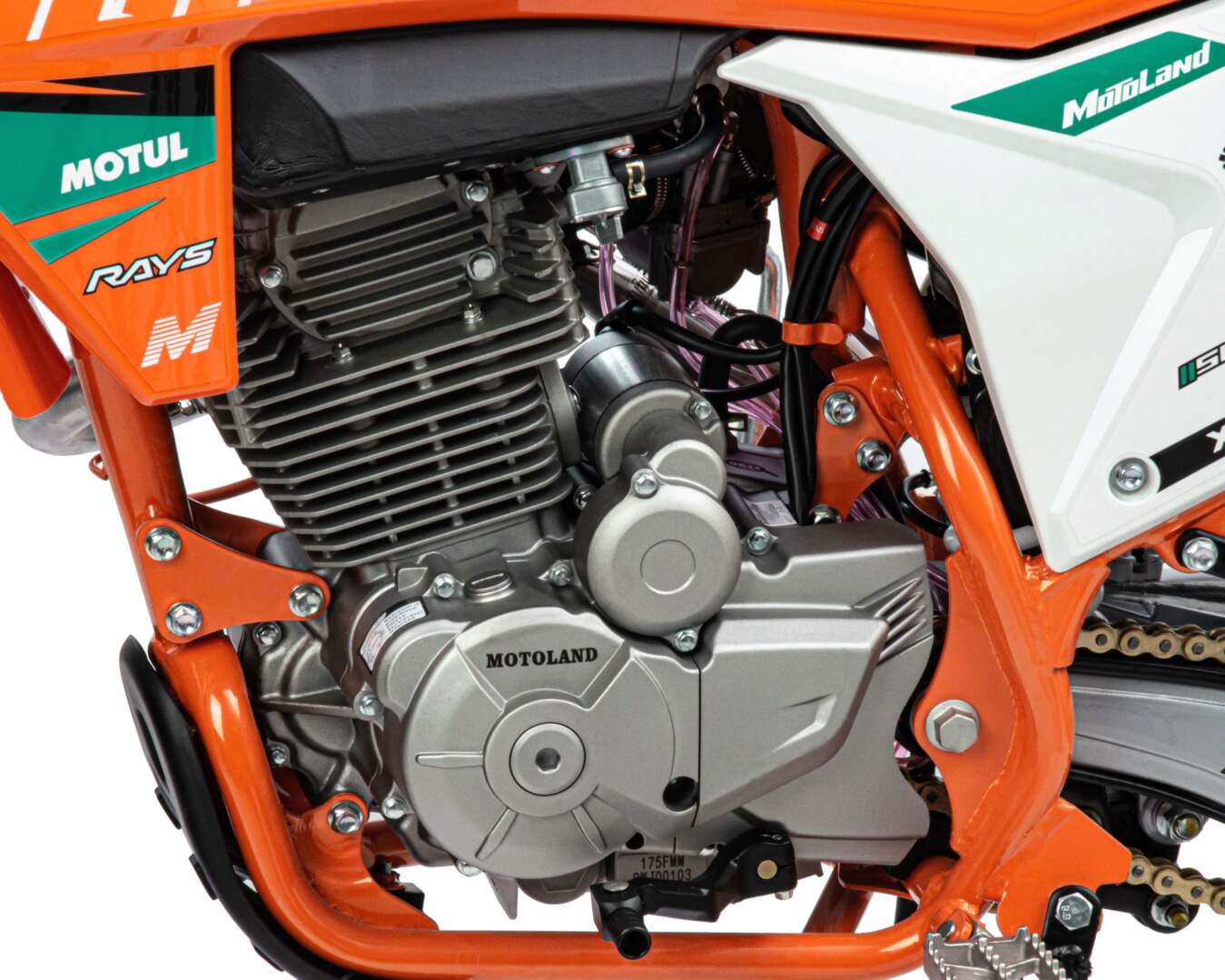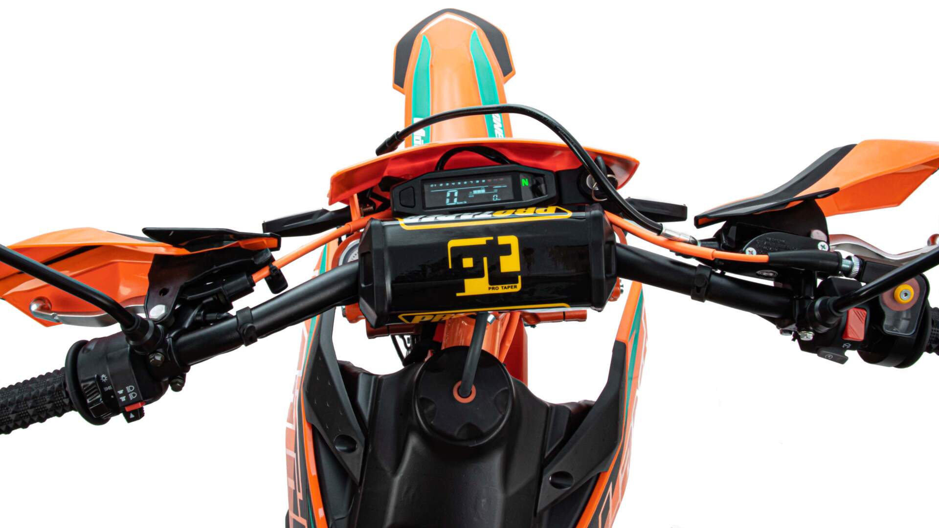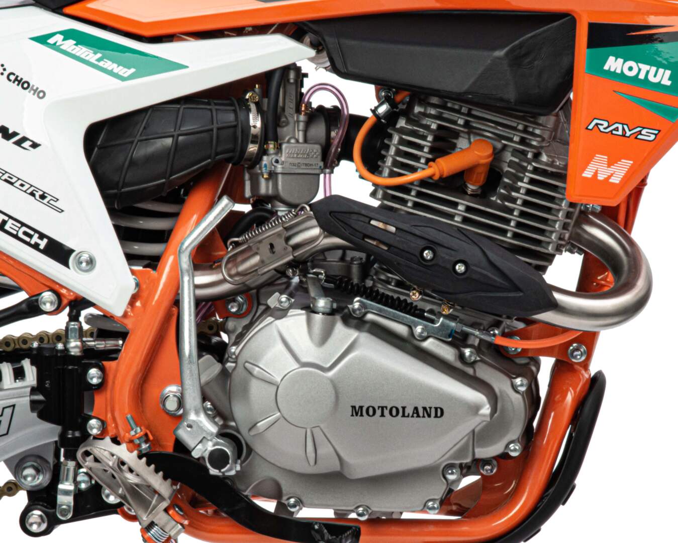 Для запуска двигателя можно использовать электростартер или кикстартер. Система зажигания электронная (CDI). Механическая трансмиссия содержит 5 передач. У мотокросса отличный запас хода: - 9 л, расход топлива - 5 л на 100 км. Передняя LED фара обновленного дизайна легко включается поворотом замка зажигания и позволяет ездить в сумерках и темноте, а также стоит эргономичная и многофункциональная приборная панель.