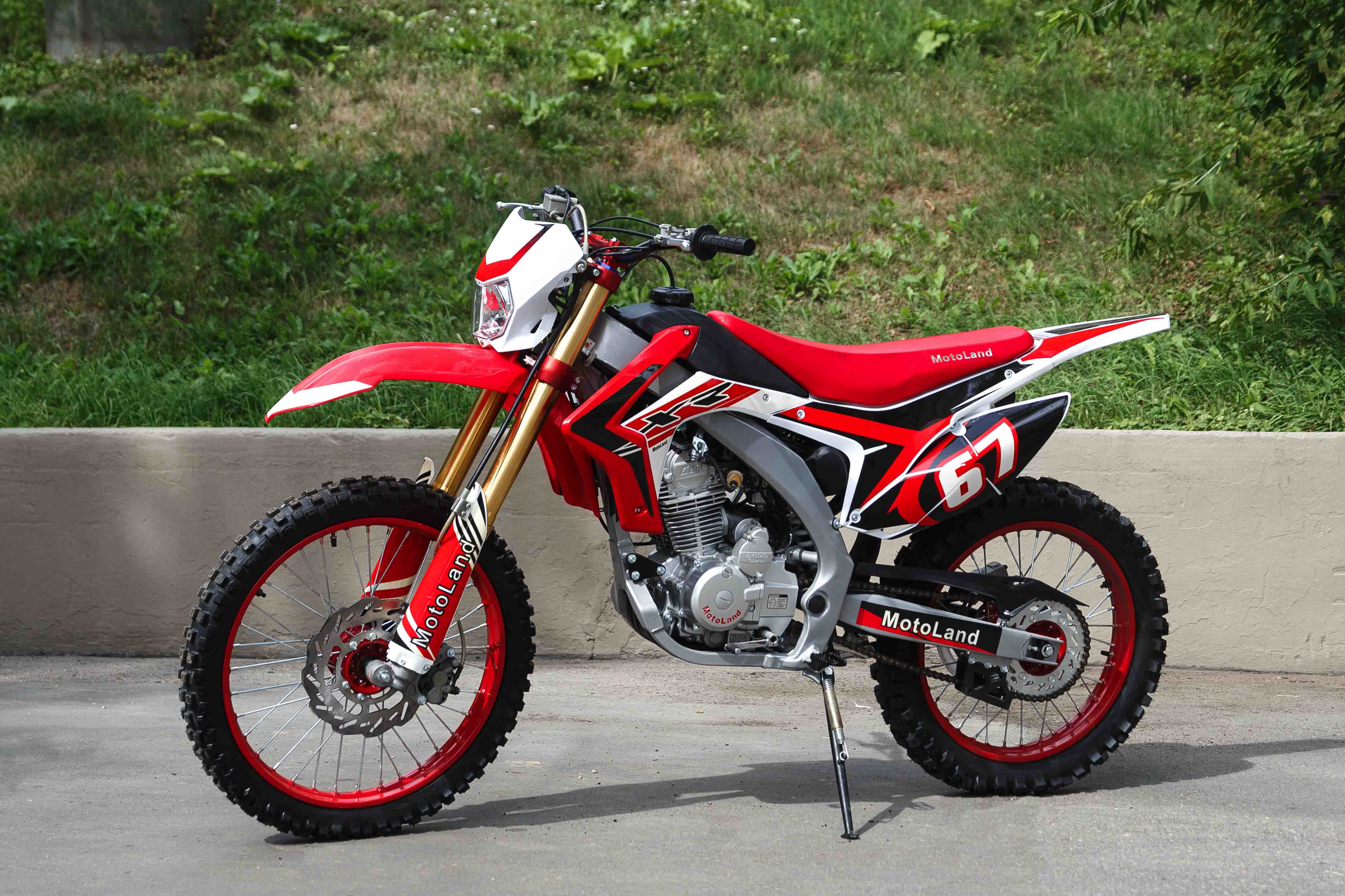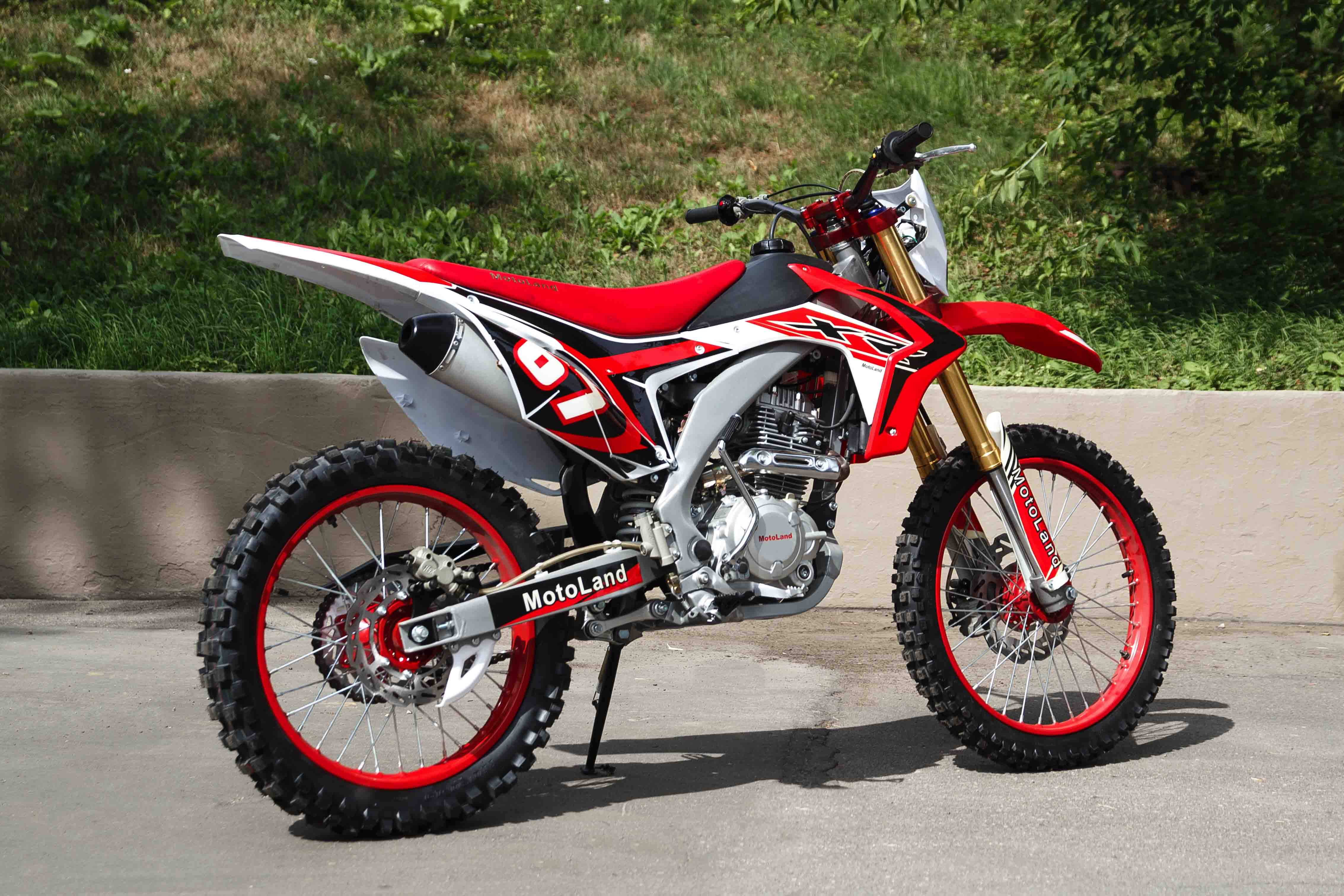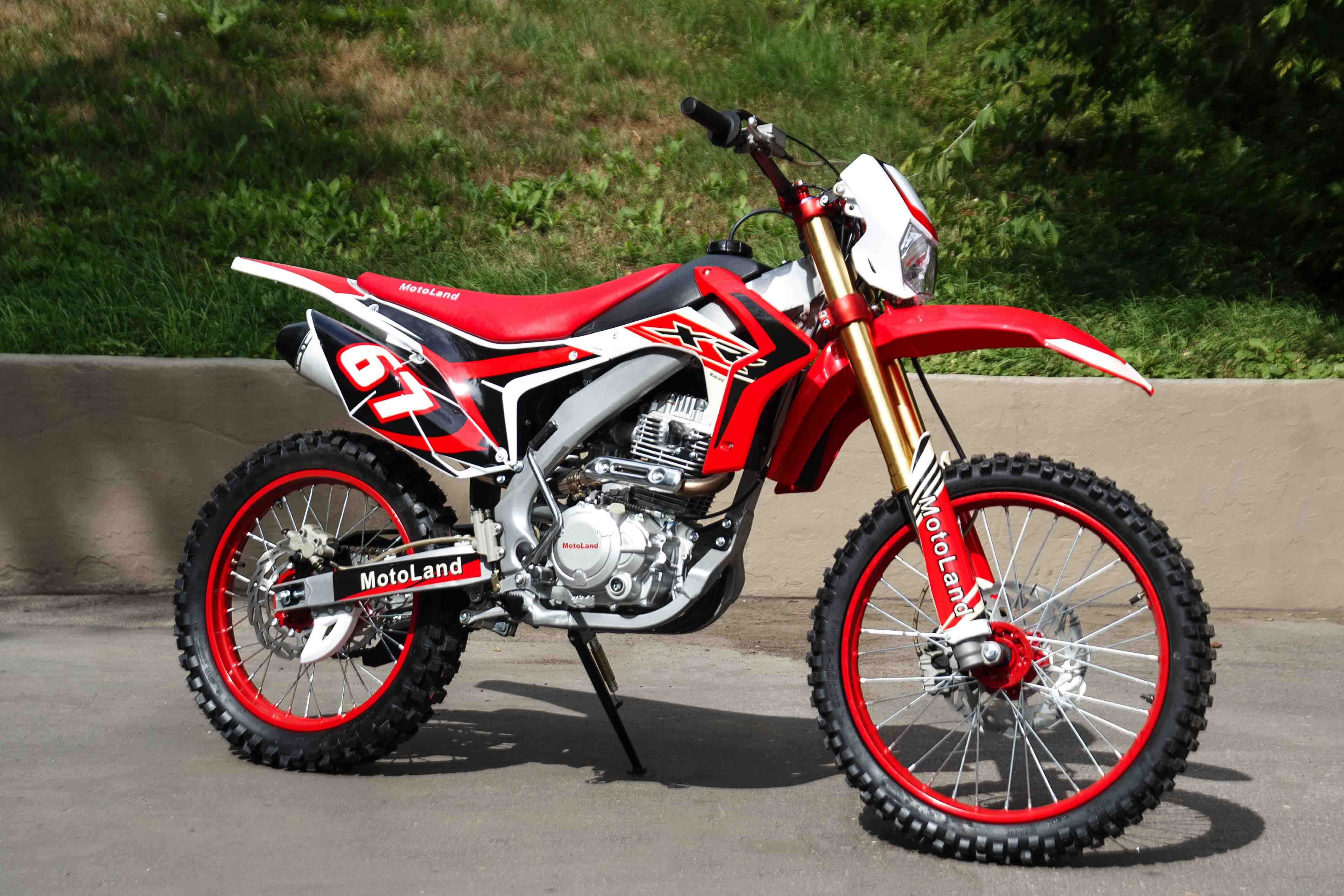 Купить Motoland 250 XR250 в стандартной комплектации будет неплохим решением для всех, кому нужен недорогой кроссовый мотоцикл, подходящий для езды по бездорожью, без выполнения прыжков и базовых трюков. Хорошее качество сборки и доступные цены на комплектующие позволяют поддерживать технику в исправном состоянии без больших затрат при любой интенсивности эксплуатации. Масса мотоцикла составляет порядка 130 кг. Габариты довольно большие – длина составляет 2000 мм., а высота по седлу – 920 мм., ширина руля- 830 мм. поэтому он отлично подойдет для тех, кто имеет рост от 175 см и выше.