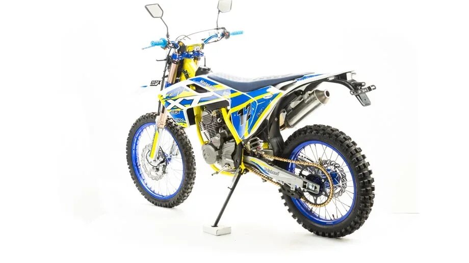 Мотоцикл MOTOLAND XT250 STколеса 21" / 18") – обновленная модель компании MotoLand. С улучшенной подвеской, имеющей настройки сжатия и отбоя переднего и заднего амортизатора. Позволяет передвигаться не только по пересеченной местности но и по дорогам общего пользования Оснащен дополнительным освещением и подворотниками.