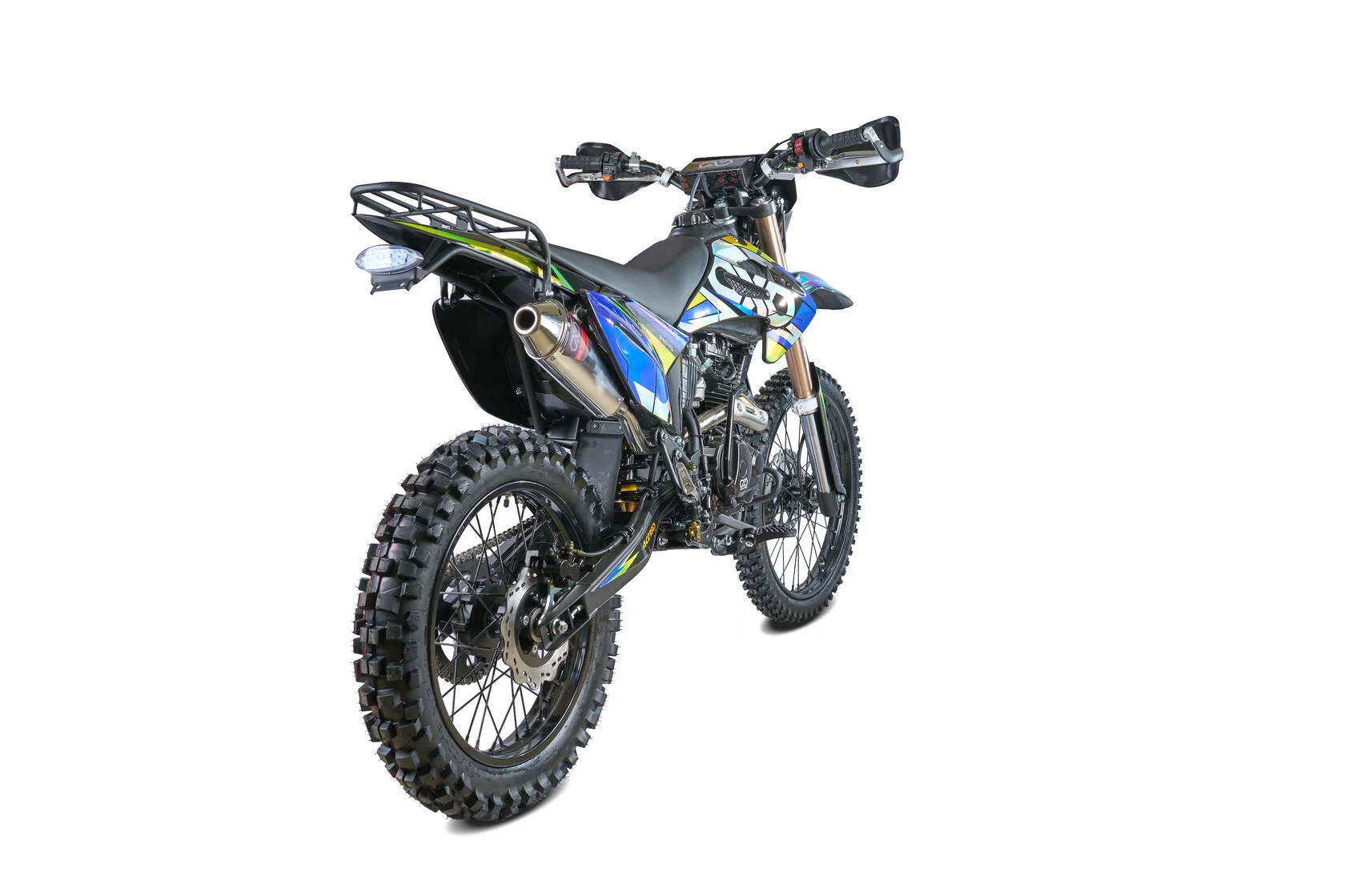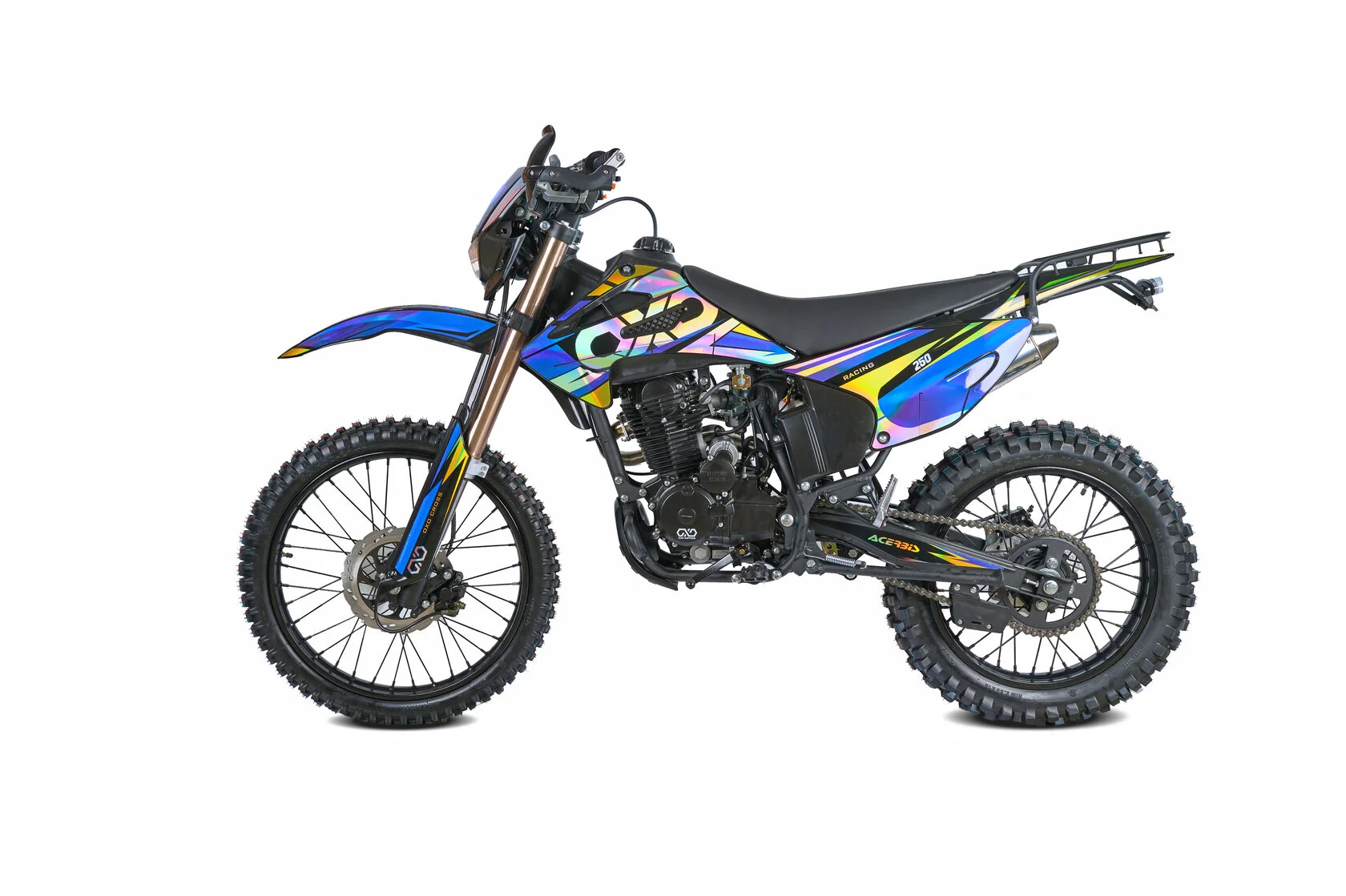 Размер передней покрышки: 80/100-21. Размер задней покрышки: 120/100-18. Они прекрасно себя ведут по песку и грязи, что позволяет райдеру отлично показать себя на пересеченной местности