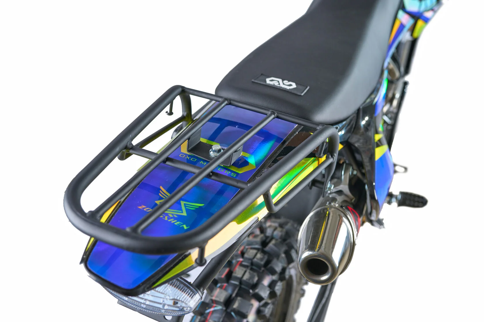 Рама мотоцикла OXO производится из труб шестигранного сечения хром-молибденовой стали, которая является очень прочной и легкой. Геометрия рамы, благодаря правильно выверенному центру тяжести и углу наклона вилки - способствует наилучшей управляемости устойчивости мотоцикла на низкой скорости.