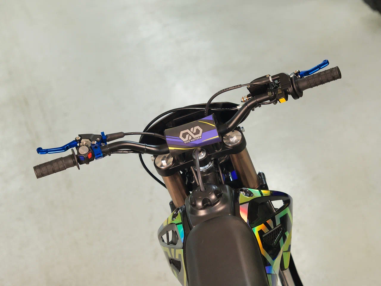 Важная часть современного эндуро мотоцикла - усиленный руль переменного сечения. На руле установлен рычаг заслонки подсоса. Алюминиевая ручка газа с коротким ходом имеет регулировку троса. Также мотоцикл укомплектован электронной панелью приборов..