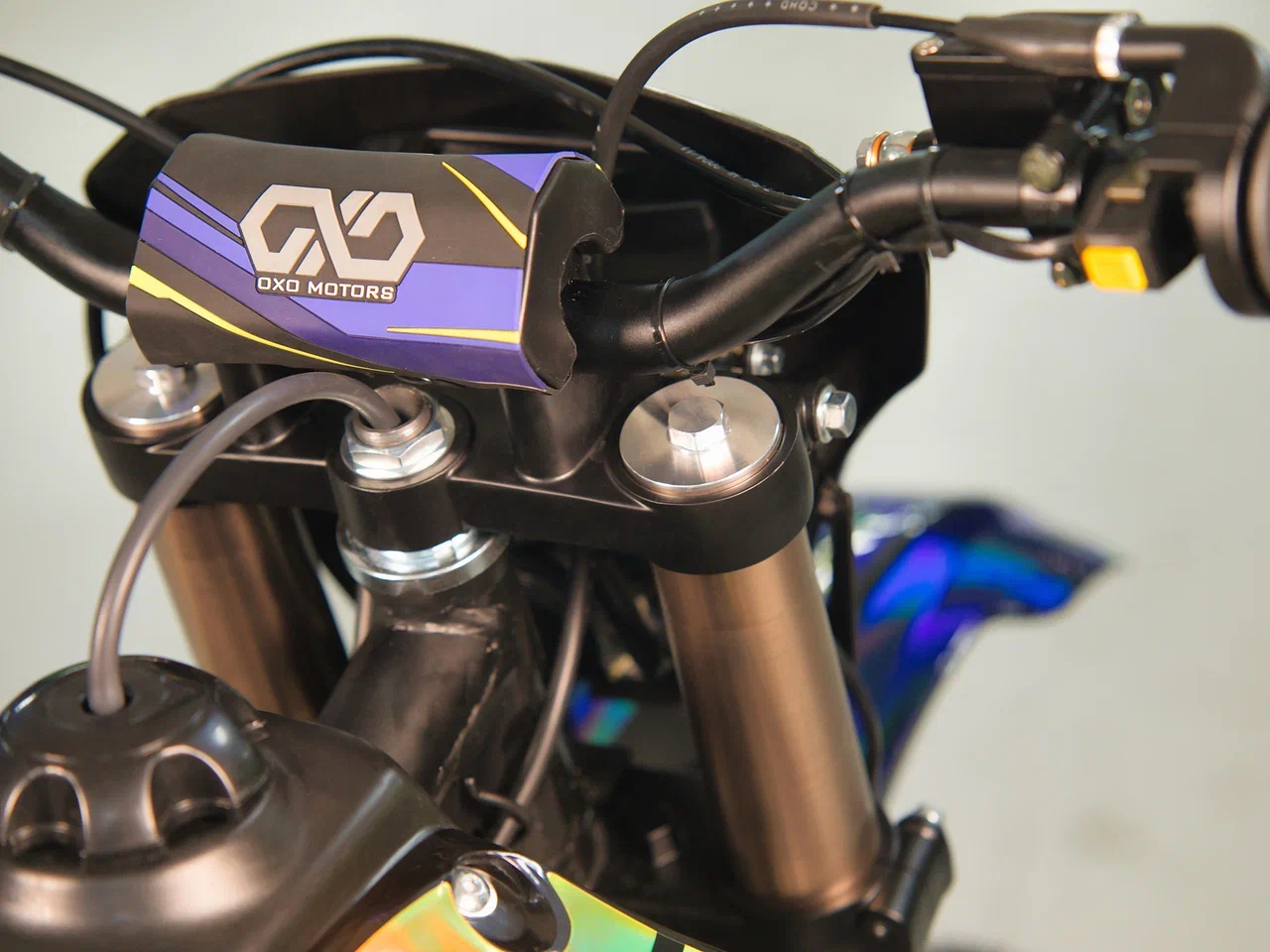 Рама мотоцикла OXO производится из труб шестигранного сечения хром-молибденовой стали, которая является очень прочной и легкой. Геометрия рамы, благодаря правильно выверенному центру тяжести и углу наклона вилки - способствует наилучшей управляемости устойчивости мотоцикла на низкой скорости.