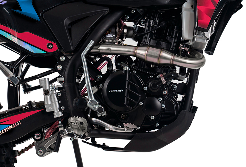 Тормоза – это важнейший компонент мотоцикла, от которого напрямую зависит безопасность райдера, а также скорость прохождения поворотов. Для безупречного результата на всех моделях PROGASI установлены дополнительные расширительные бачки и армированные шланги тормозной системы. Спереди установлена 2-поршневая тормозная система и 1-поршневая - сзади.