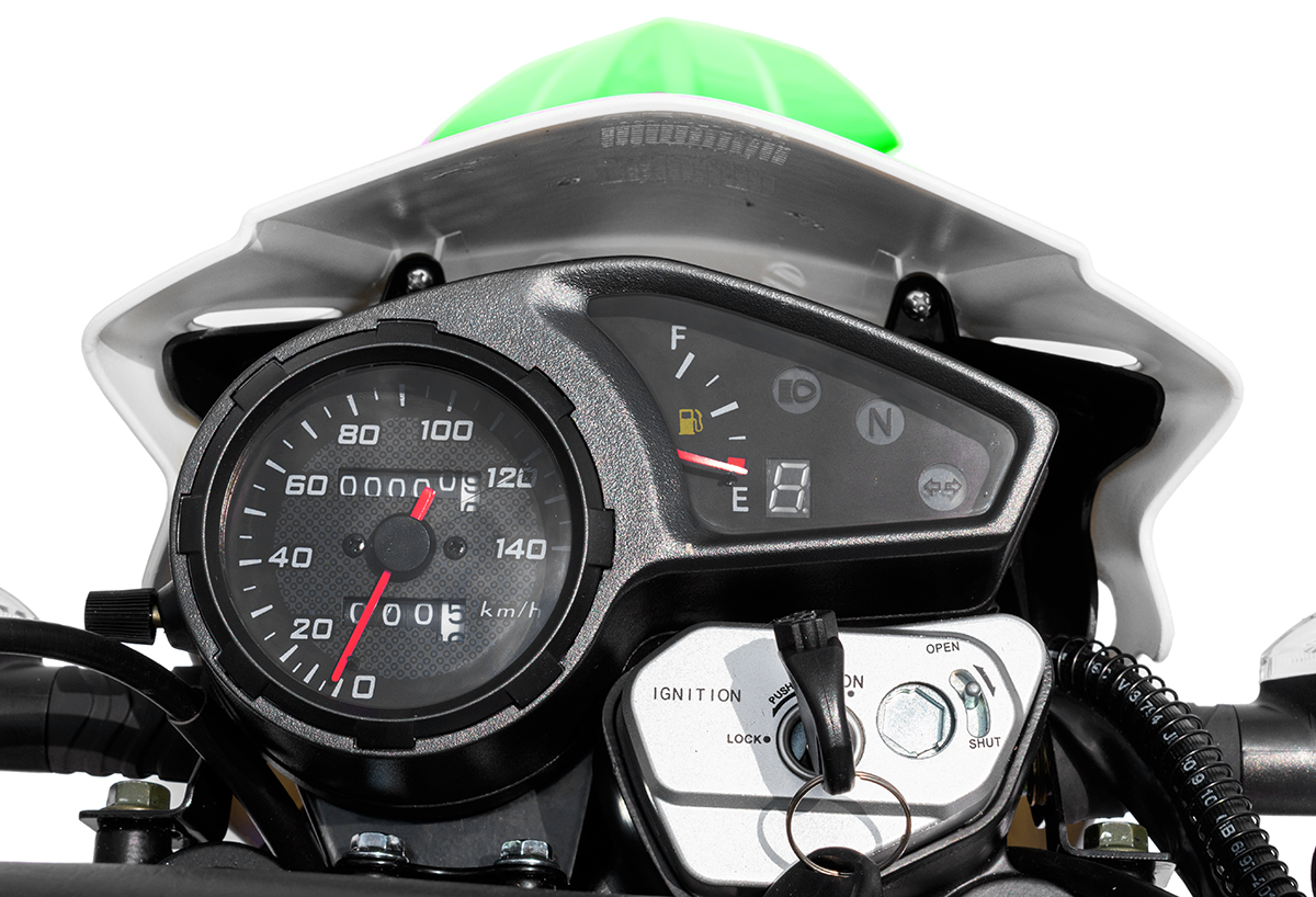 В надежной раме с защитными дугами Regulmoto SK 200GY-5 установлен 4-тактный одноцилиндровый двигатель с рабочим объемов в 20 см3, демонстрирующий максимальную мощность в 13.6 л.с. Мотор с воздушным охлаждением, в котором можно без труда признать реплику двигателя известного японского производителя, оснащается балансировочным валом, что позволяет избавиться от излишней вибрации.