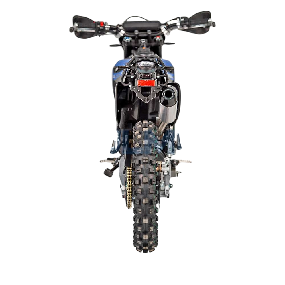 Этот мотоцикл также оснащен новыми амортизаторами с полной регулировкой сжатия и отбоя, обеспечивая комфорт и уверенное вождение на любой местности. Полые оси колес значительно уменьшают вес мотоцикла, способствуя улучшенной маневренности.