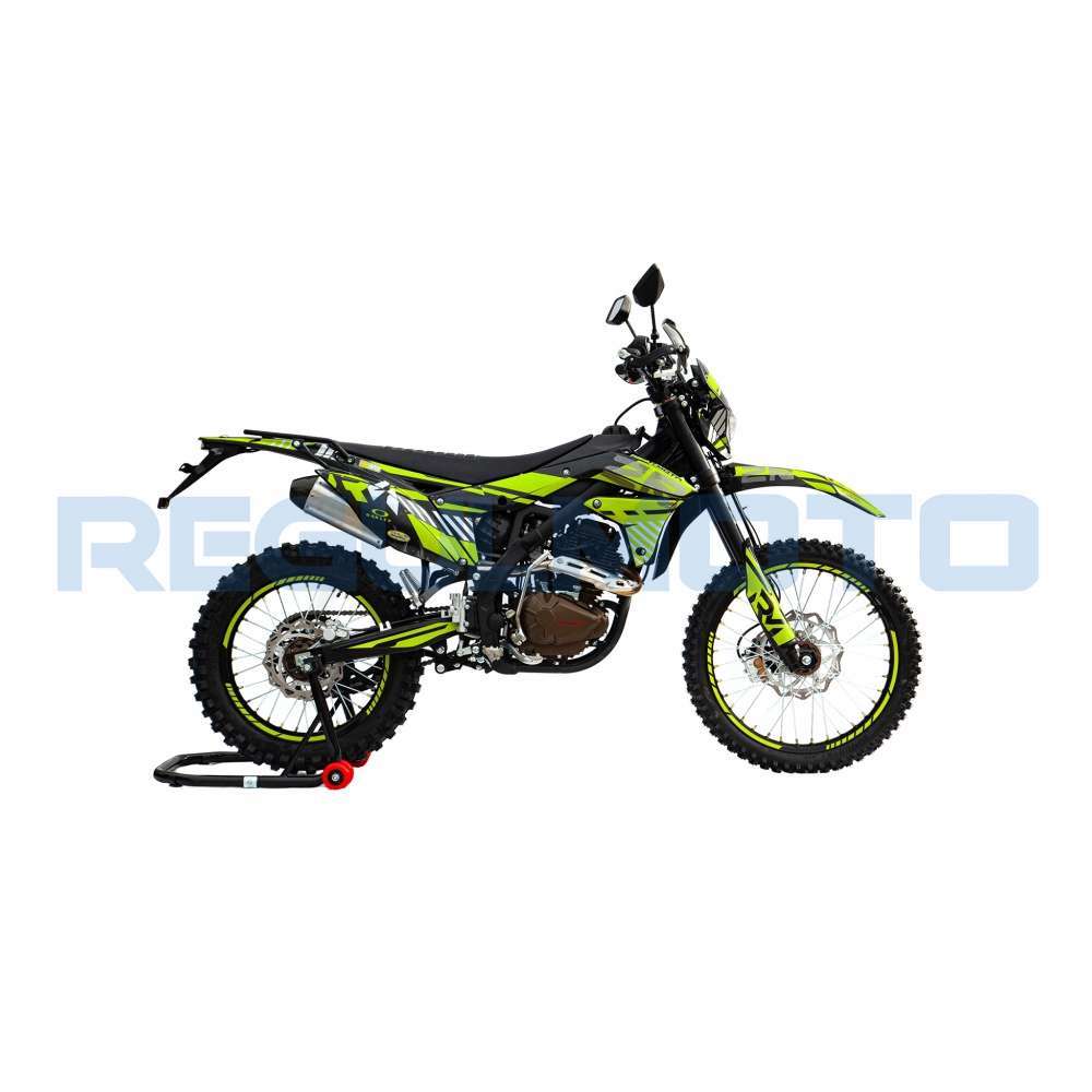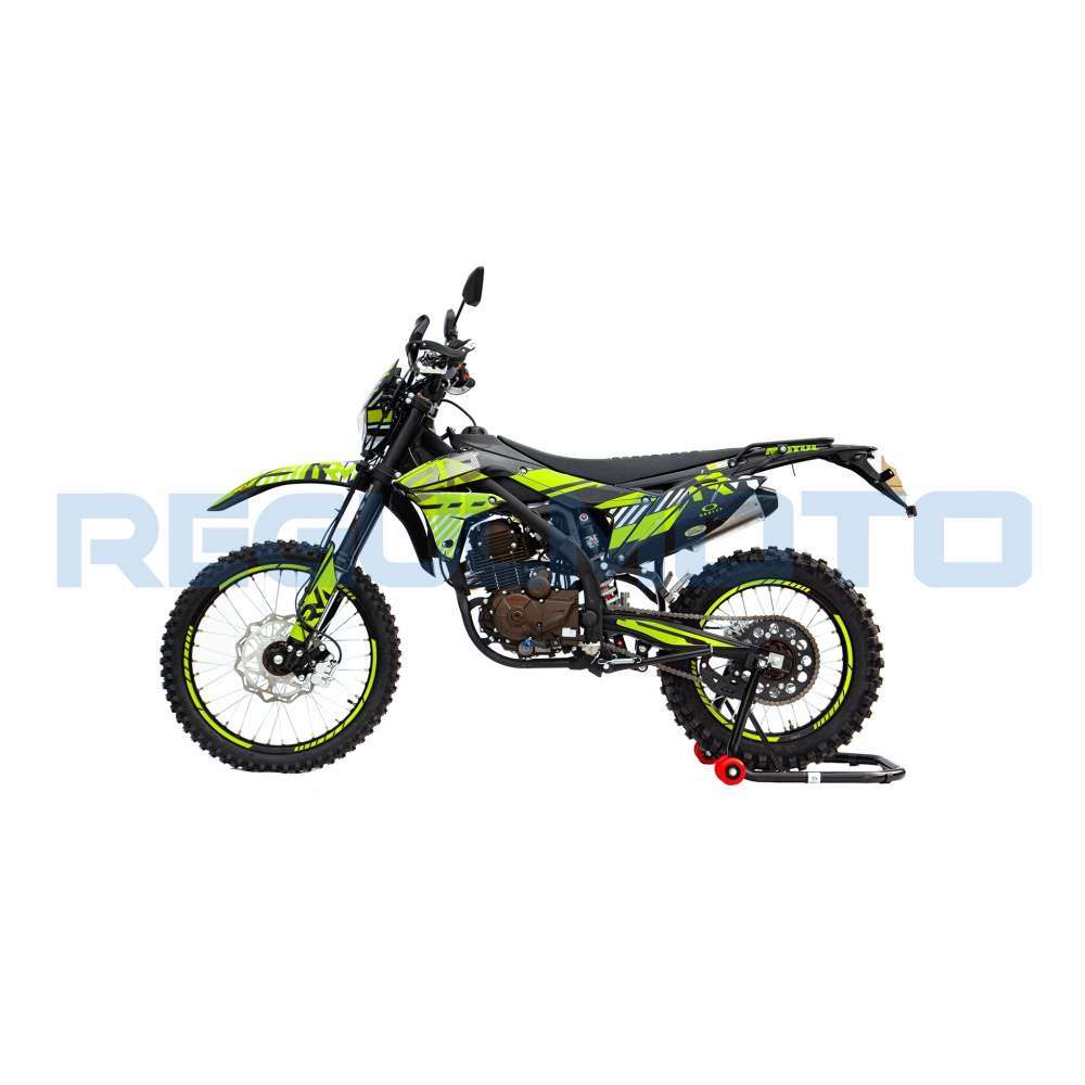 Regulmoto ZR 250 PR также привлекает внимание отличными внешними данными: мотоцикл комплектуется крепким и гибким пластиком с ярким дизайном, выполненным в узнаваемой стилистике популярной модели известного производителя.