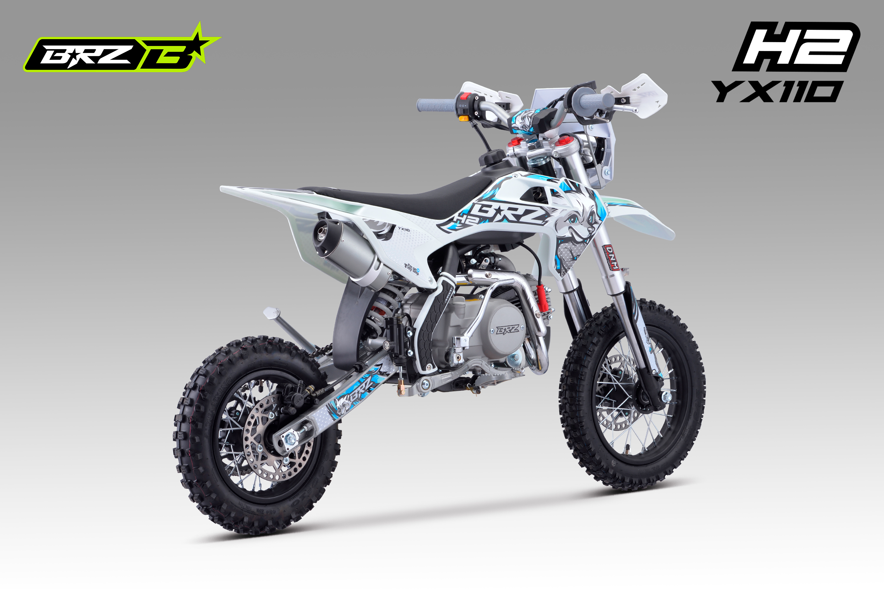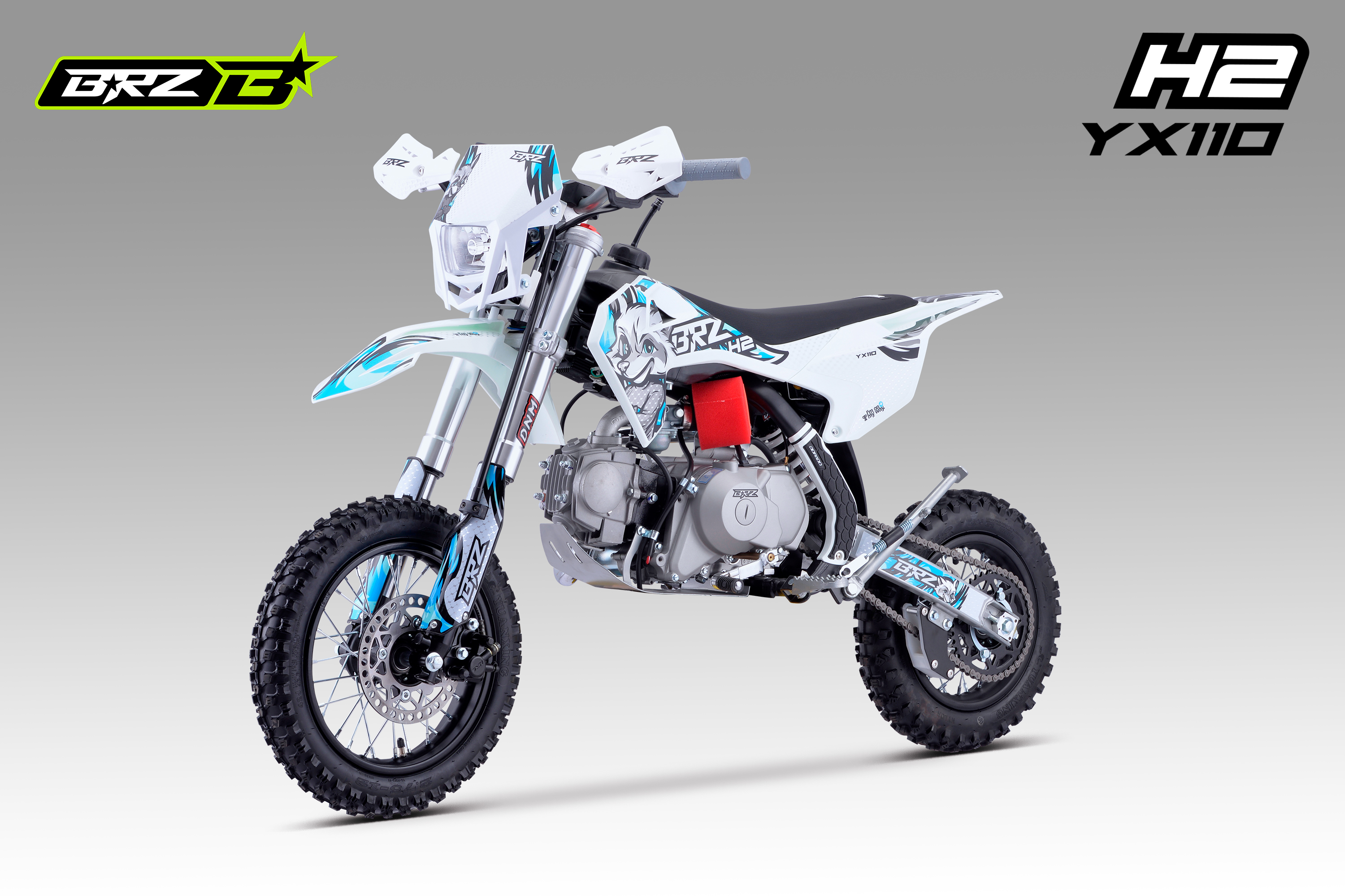 Питбайк BRZ H2 YX110 на полу-автоматической N-1-2-3-4 КПП с электростартером для детей и подростков 8-12 лет.