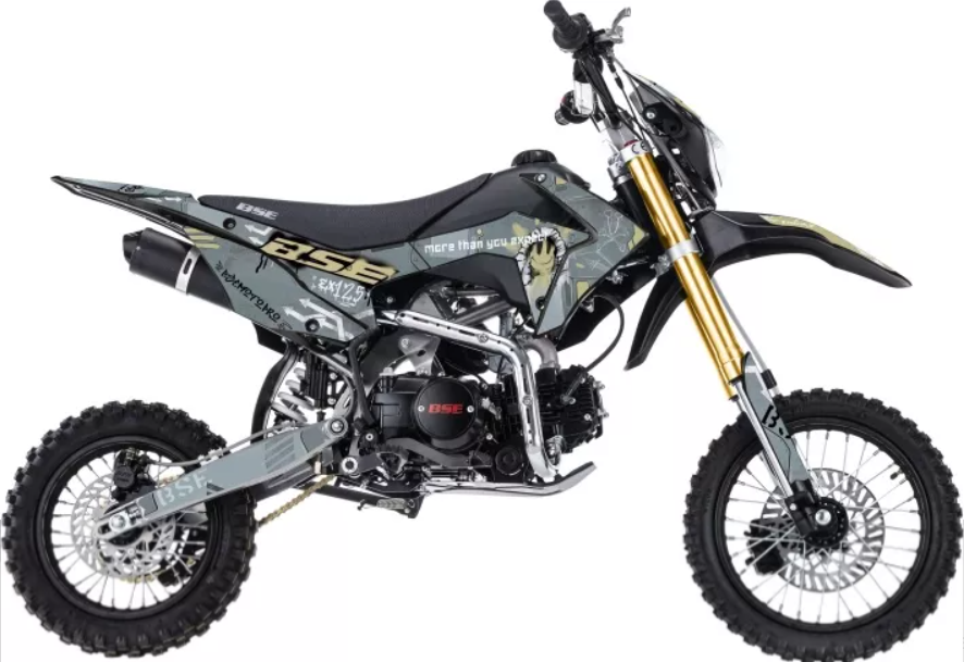 BSE EX 125e – это питбайк, созданный компанией BSE, предоставляющий отличные характеристики для любителей активного мотоциклетного опыта. С массой всего 75 кг и мощностью двигателя 10 л. с., этот бензиновый 1-цилиндровый 4-х тактный мотоцикл с легкостью подчеркивает свою маневренность и эффективность.