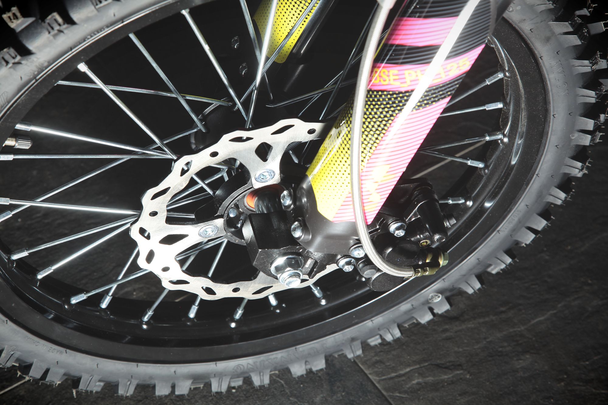 Запуск мотора осуществляется при помощи электростартера или кик-стартера. Подвески с большими ходами: передняя - телескопическая вилка перевёрнуто типа, задняя- моноамортизатор. "Злая" резина, Мощная тормозная система HSK Racing, японские колесные подшипники NTN, усиленная цепь 428 Gold, защита мотора - питбайк полностью укомплектован всем необходимым для покатушек и гонок.