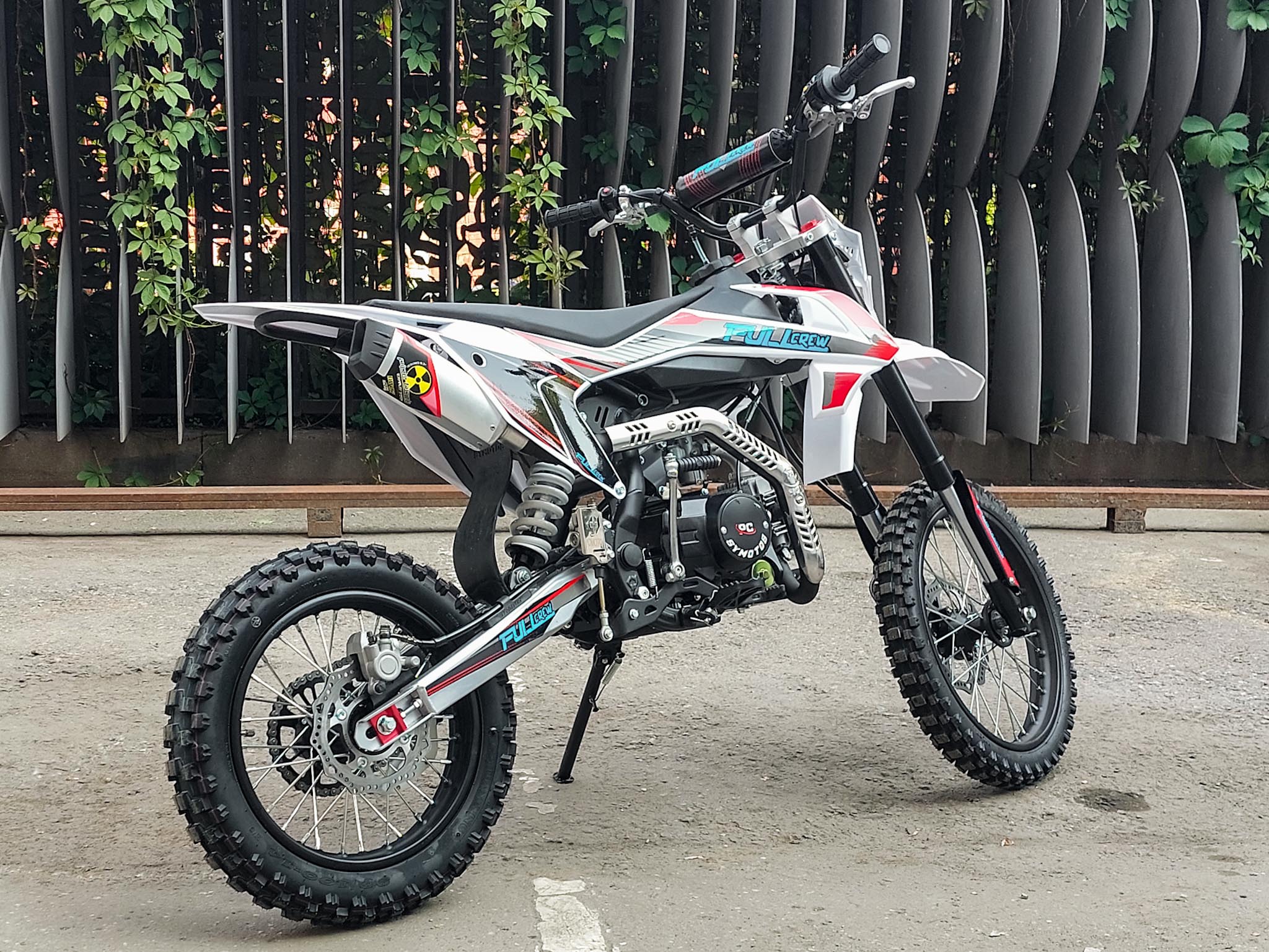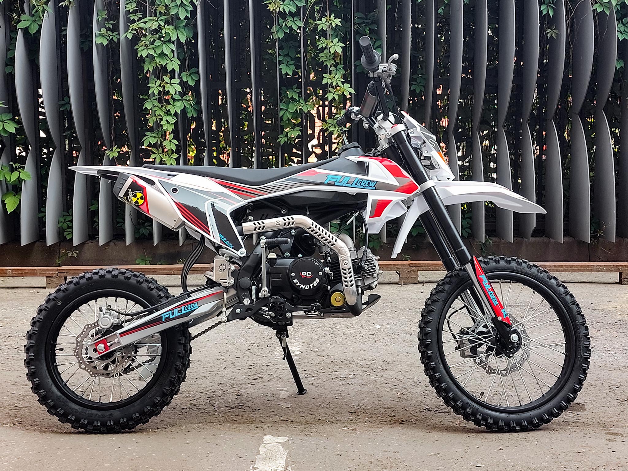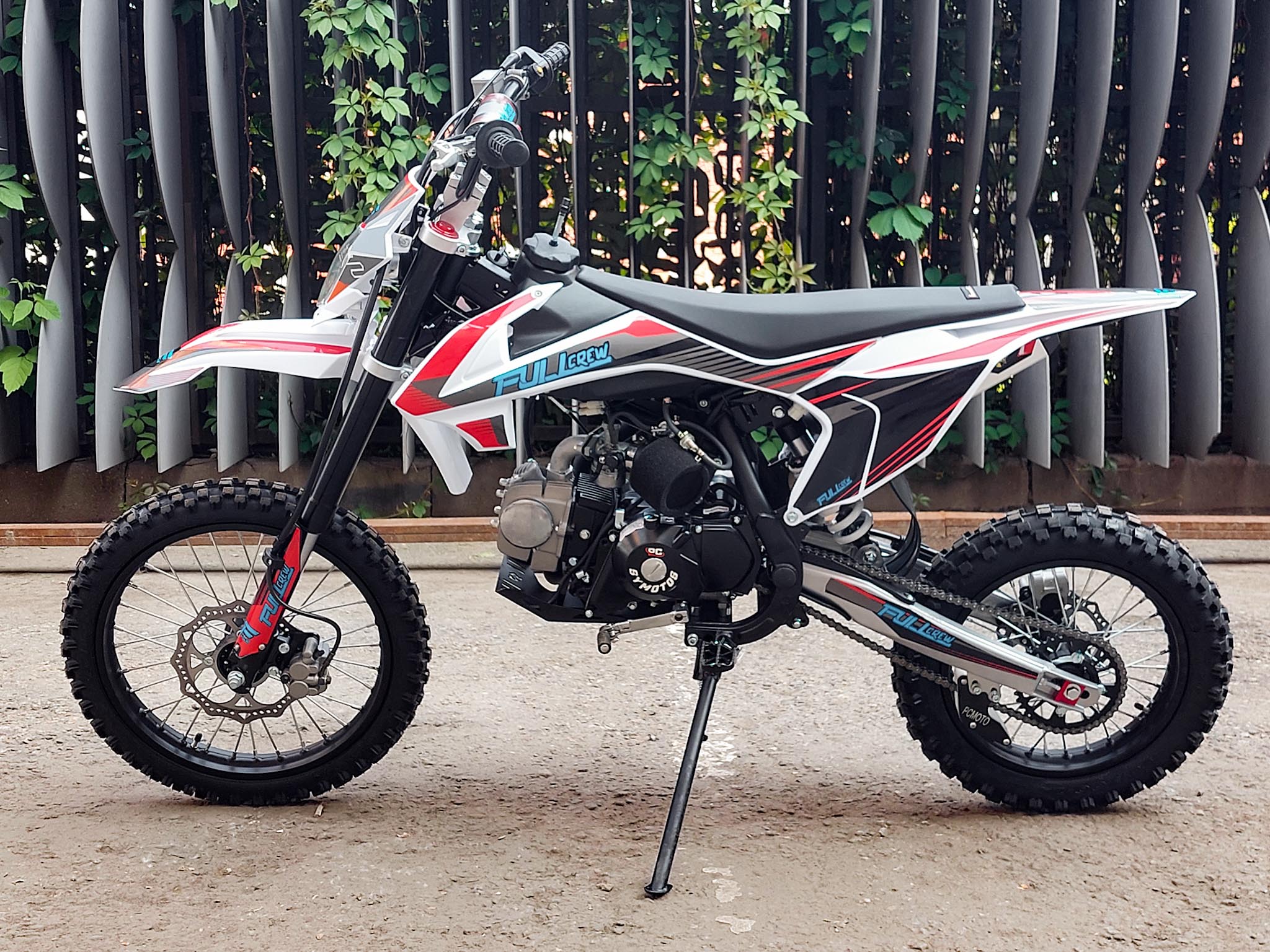 Питбайк Full Crew FC125e отлично подходит для пробующих мотоспорт – резвый мотор на 125 кубов с 9 лошадиными силами прекрасно работает с механической коробкой. Охлаждение воздушное – простая конструкция облегчает ремонт и удешевляет обслуживание. Для начинающих эта модель особенно интересна еще и из-за цены – можно основам научиться на нем с перспективой пересесть в дальнейшем на что-то более серьезное.