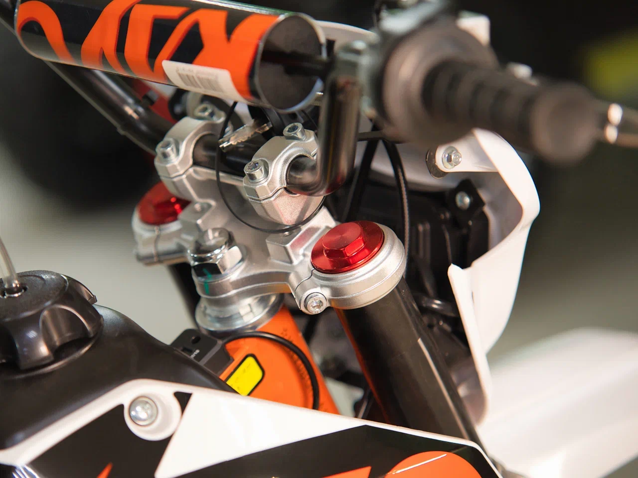 Мотоцикл имеет вес всего 73 кг. Усиленная рама из хром-молибденового сплава и подвеска позволяют эффективно амортизировать удары при езде по неровностям и препятствиям на трассе. Передняя подвеска — телескопическая вилка перевёрнутого типа длиной 770 мм, задняя — моноамортизатор длиной 360 мм. Оба компонента подвески являются нерегулируемыми. Рама и пластик являются собственной разработкой производителя. Мотоцикл оснащён классическими стальными спицованными колёсами диаметром 17 дюймов спереди и 14 дюймов сзади. Эффективное и безопасное замедление с любых скоростей обеспечивают гидравлические дисковые тормоза. Высококачественная износостойкая резина с развитым протектором отлично держит дорогу на различных типах покрытия.