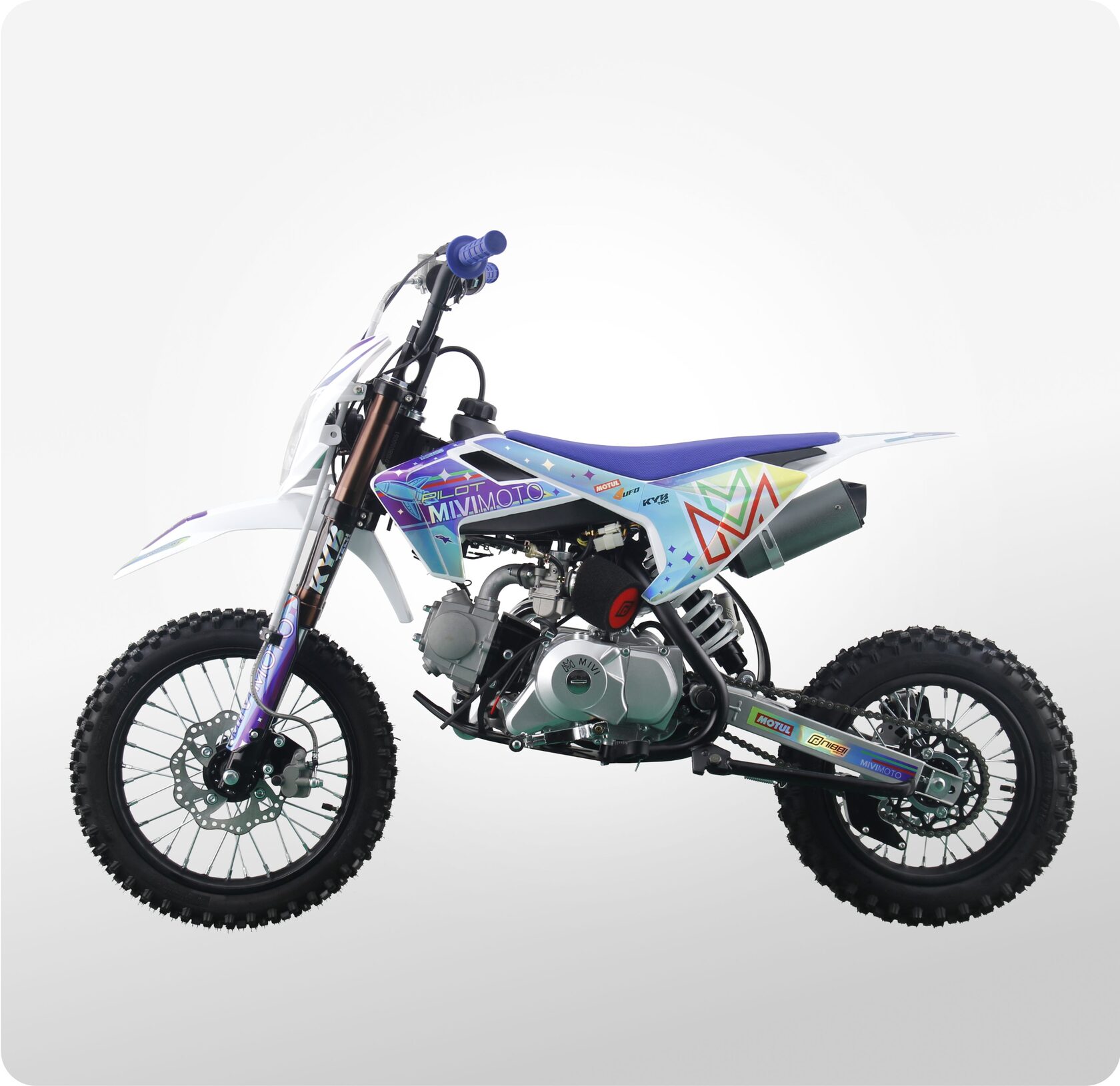 MIVIMOTO PILOT 125 — идеальный питбайк для новичков и молодых гонщиков. Легкий, компактный и надежный, он создан для тех, кто делает первые шаги на трассе и стремится развивать свои навыки. Модель сочетает в себе продуманный дизайн, простоту управления и уверенную динамику.