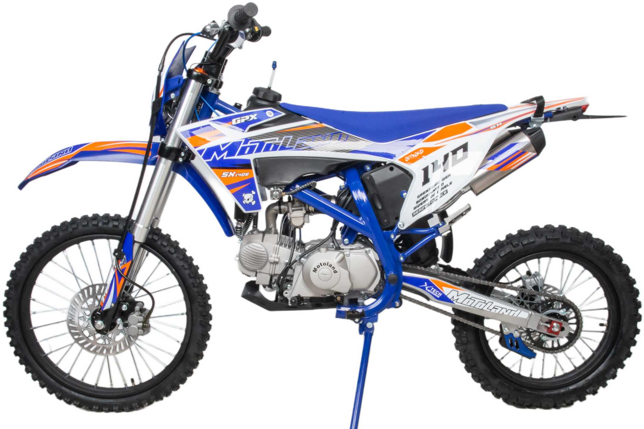 Встречайте долгожданную новинку SX на 140 куб. Питбайк Motoland SX 140 E 19/16 идеален для поездок по грунтовым дорогам и бездорожью. Хорошо чувствует себя на мягком и среднем грунте, разгоняется до 90 км/ч. Оснащён спортивными траверсами и амортизаторами с регулировкой. весит всего 75 кг.