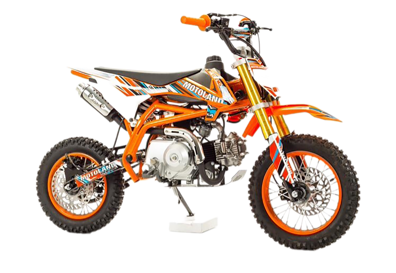 Обновленный надёжный питбайк CRF10 идеален для поездок по грунтовым дорогам и бездорожью. Хорошо чувствует себя на мягком и среднем грунте, разгоняется до 40 км/ч. Оснащён CNC траверсами, фарой, алюминиевыми ободами, весит всего 60 кг.