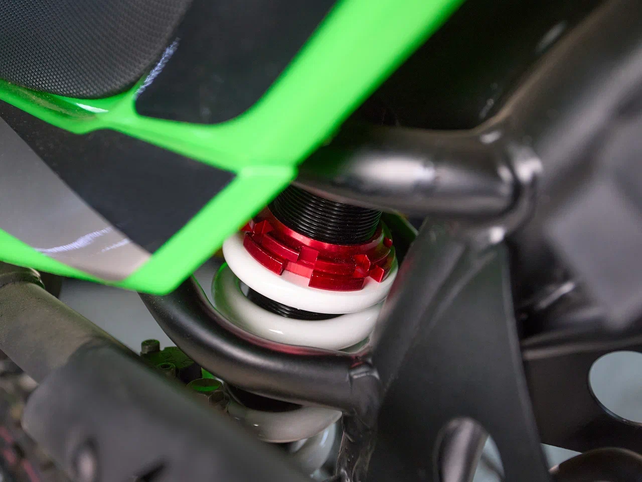 Питбайк весит всего 50 кг, при этом выдерживает вес до 60 кг. Колёса спицованные. Размер заднего и переднего колеса — 10 дюймов. Тормоза дисковые, передний тормозной суппорт двухпоршневой, задний — однопоршневой.