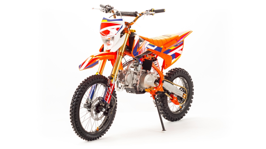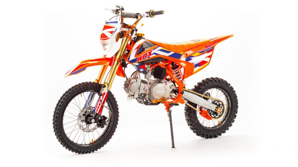 Недорогой надёжный питбайк WRX125 идеален для поездок по грунтовым дорогам и бездорожью. Хорошо чувствует себя на мягком и среднем грунте, разгоняется до 90 км/ч. Оснащён CNC траверсами, фарой, алюминиевыми ободами, весит всего 70 кг. Питбайк прост в управлении и не требует специального ухода, подойдёт как новичкам, так и любителям мотокросса.