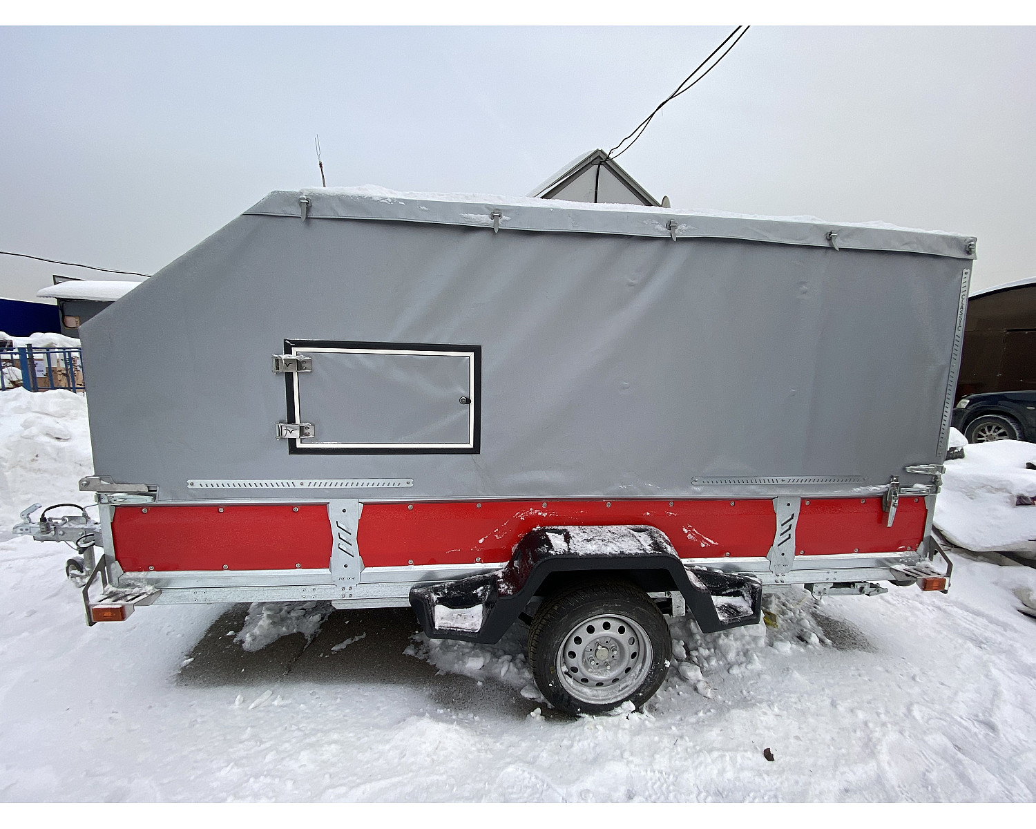 Прицеп VOYAGE Classic 3,6 Бортовой, с тентованным подъемным каркасом, окнами и задней дверью (ш. 1,65; д. 3,6)