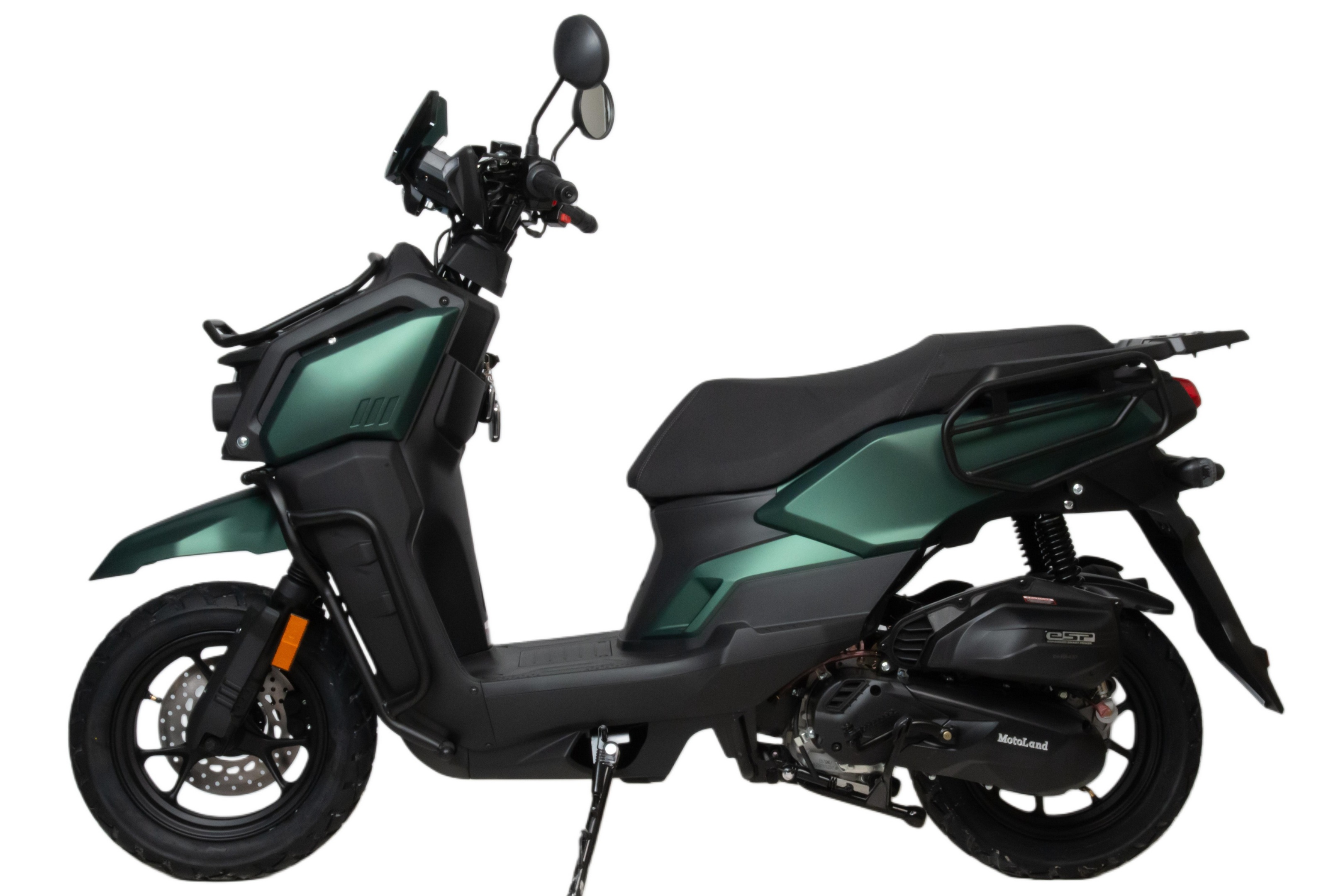 Скутер Motoland Tank - отличный вариант для загородных поездок и рыбалки: имеет множество дополнительных защит и закрытий, колеса 12" с резиной для поездки по грунтовой дороге и асфальту.