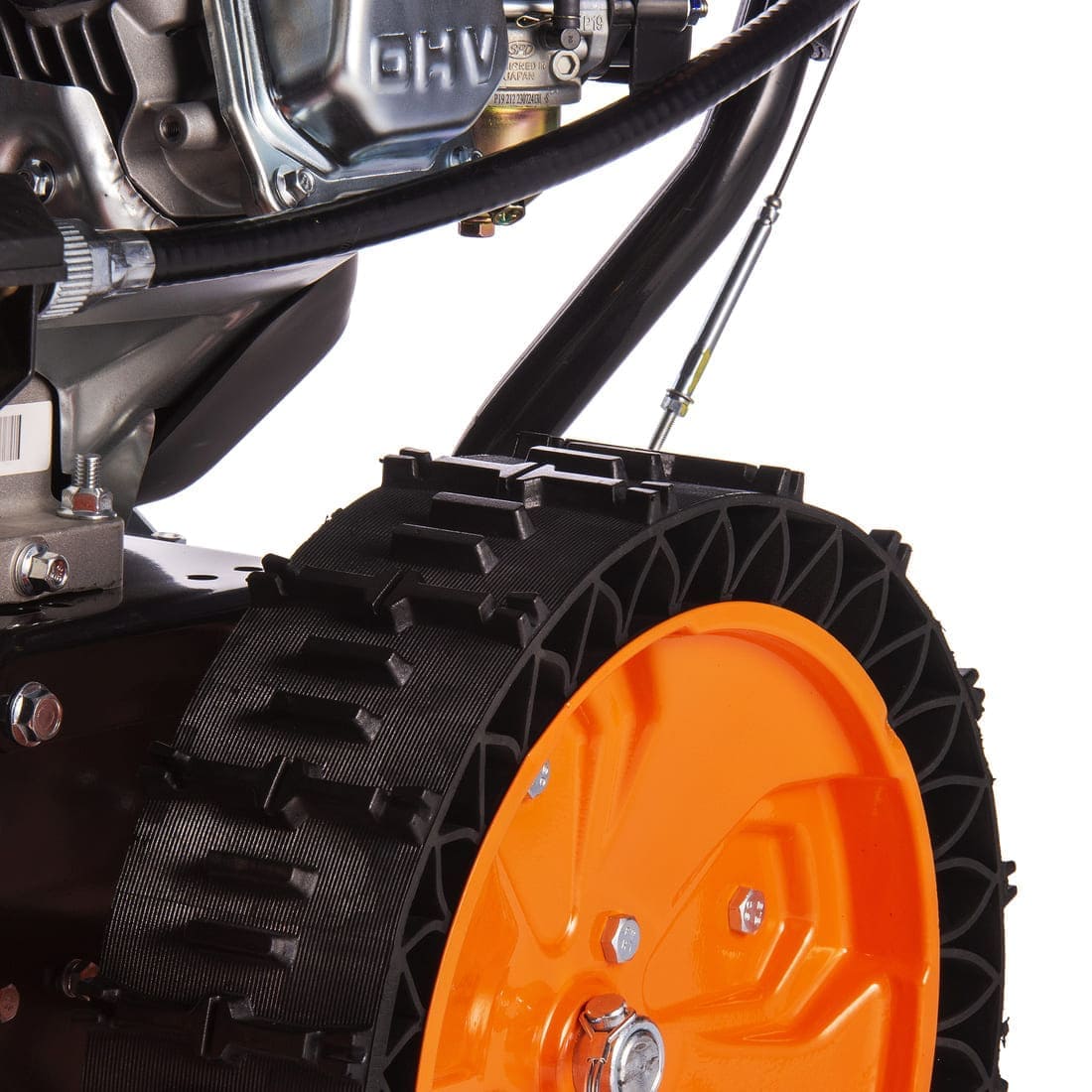 На Kettama 80S установлены безвоздушные шины SnowLink с технологией Runflat. Эти шины с глубоким протектором исключают пробуксовку агрегата на обледенелом участке. Увеличенное сцепление даёт возможность достичь показателей производительности практически равных гусеничному шасси. При этом, более низкий общий вес снегоуборщика позволяет достигать на этой модели показателей производительности до 5 т/ч со снегом плотностью до 500 кг/м3 (сброшенный с крыш). На свежевыпавшем влажном снегу плотностью до 200-230 кг/м3 этот снегоуборщик способен достигать производительности до 15 т/ч. Шины позволяют достигать высокого сцепления и повышенной производительности даже во время поворотов.