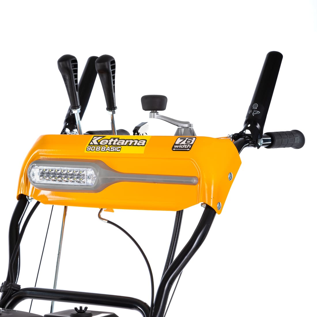 Kettama 90B — одна из самых популярных моделей в своём классе с управлением на панели оператора. 90B относится к линейке бытовых снегоуборщиков Basic, обладая всеми её достоинствами. При достаточно демократичной цене качество основных узлов остаётся на высоком уровне. Это касается рамы, редуктора, ДВС и трансмиссии. Снизить цену удалось благодаря оптимизации опций комфорта. То есть, эту модель максимально упростили, оставив только основные элементы, необходимые для качественной уборки снега. При этом всё управление вынесено на панель оператора.