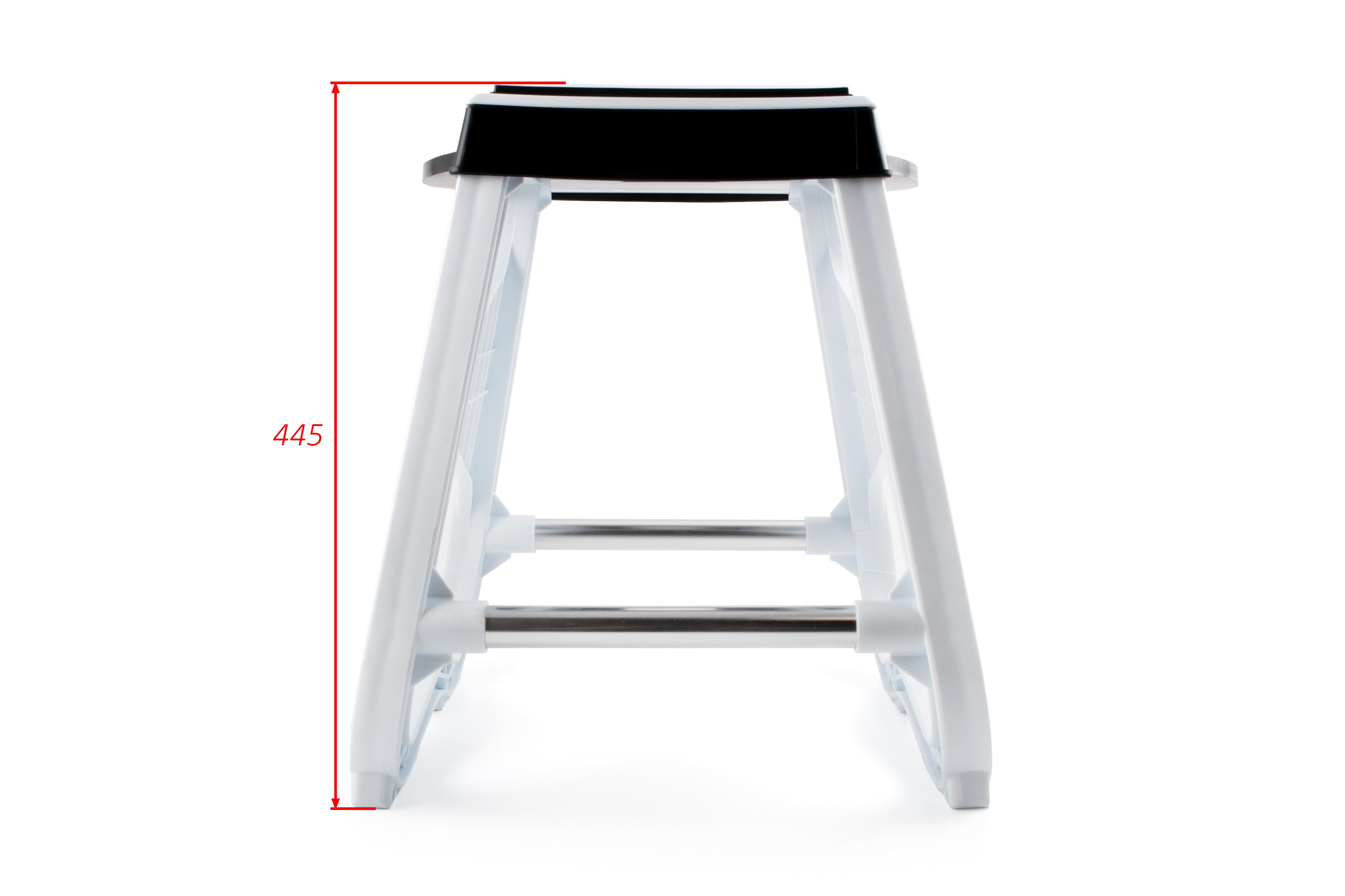 Универсальная стационарная подставка для обслуживания и хранения мотоцикла. Конструкция типа «табуретка» обеспечивает устойчивость и надежную фиксацию мототехники при ремонте, мойке, смазке цепи и других работах.