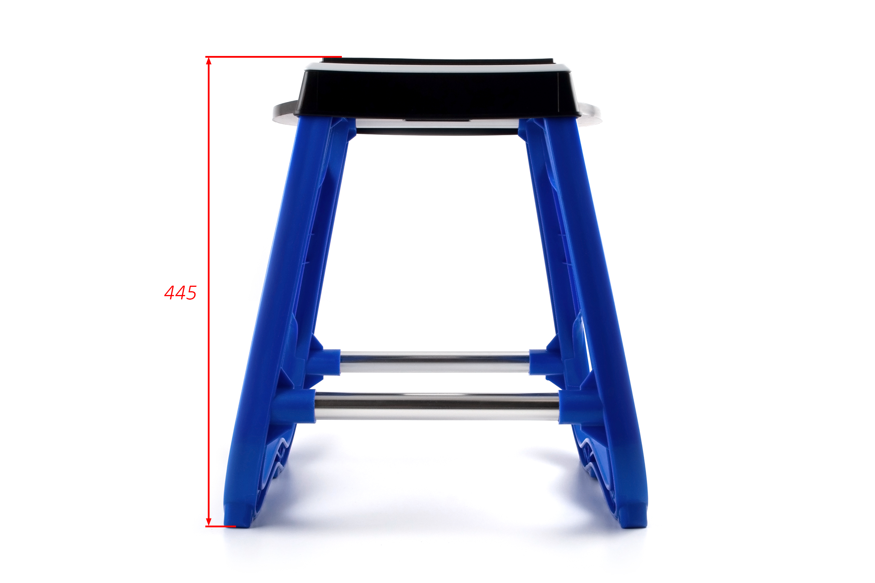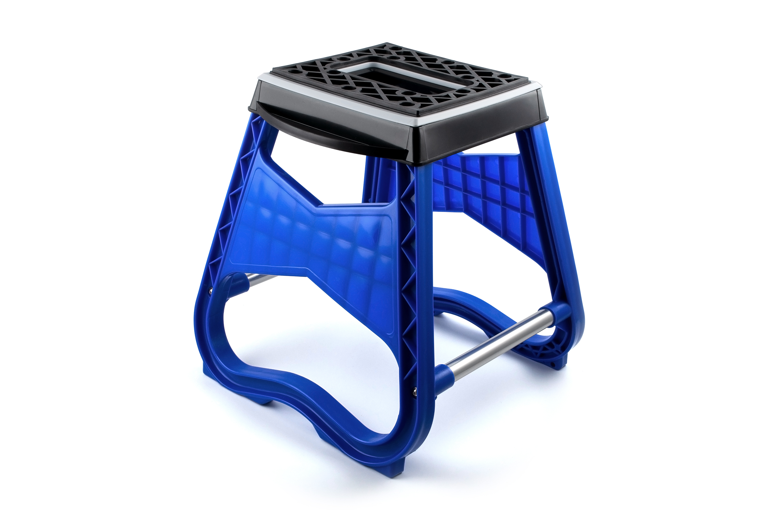 Универсальная стационарная подставка для обслуживания и хранения мотоцикла. Конструкция типа «табуретка» обеспечивает устойчивость и надежную фиксацию мототехники при ремонте, мойке, смазке цепи и других работах.