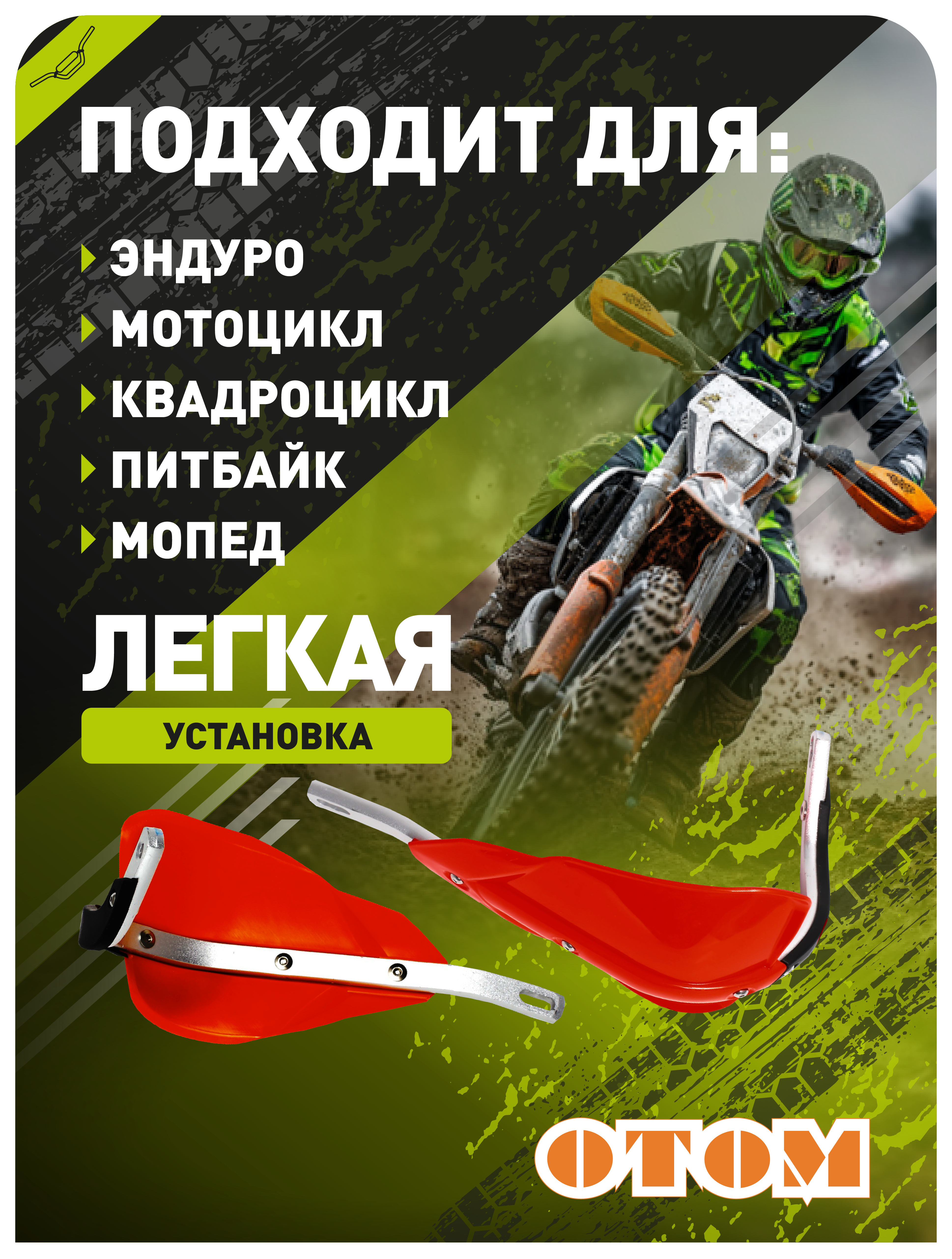 Защита OTOM HP14 подходит для большинства внедорожных моделей, превращая любую поездку в уверенное приключение. Грязь, песок, неровности трассы — ваши руки остаются под защитой, позволяя полностью сосредоточиться на управлении.