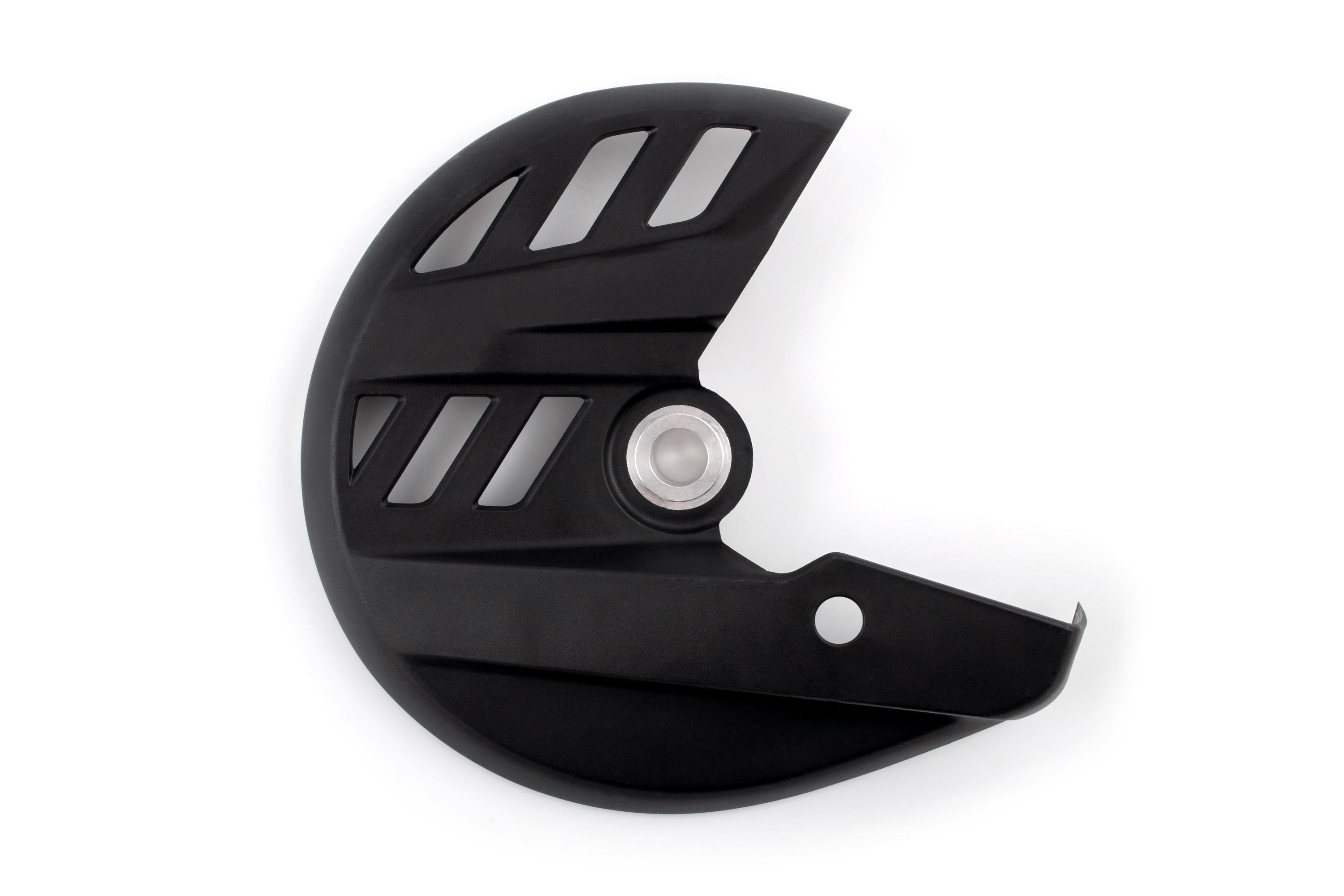 Надёжная передняя защита тормозного диска с алюминиевой втулкой, разработанная специально для современных эндуро и кроссовых мотоциклов на базе рамы K10 с пластиком тип KTM 2023–2024. Обеспечивает эффективную защиту тормозного диска от ударов, камней и грязи, что особенно важно при эксплуатации в тяжёлых условиях и на гонках. Изготовлена из ударопрочного пластика, втулка облегчает и ускоряет установку на штатные крепления.