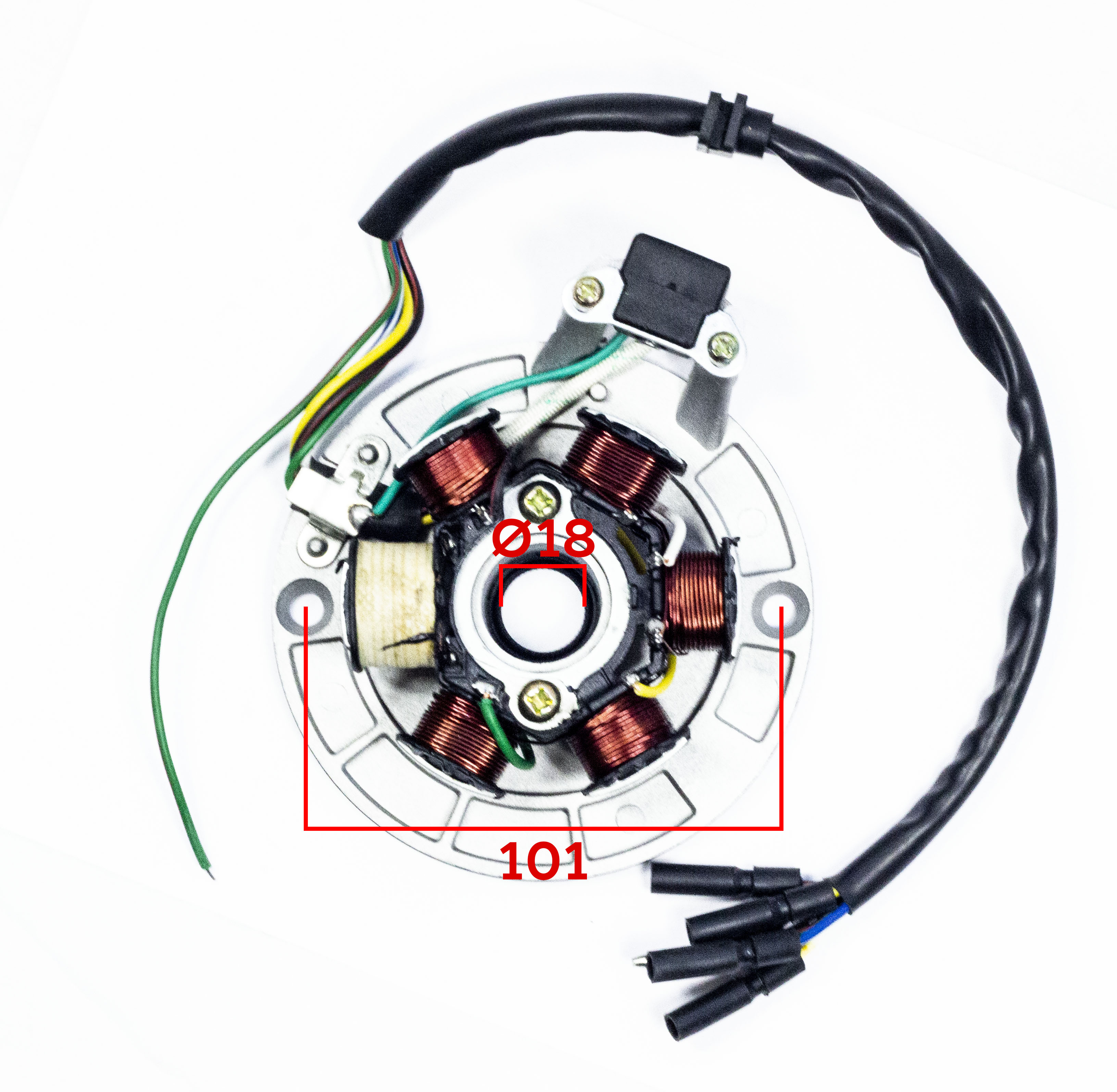 - Статор генератора (магнето) для горизонтальных двигателей YX 125–160 см³. Обеспечивает питание бортовой сети и стабильный импульс зажигания для систем AC-CDI. Точная посадка под картеры YX и штатные разъёмы обеспечивает быструю установку и надёжную работу.
